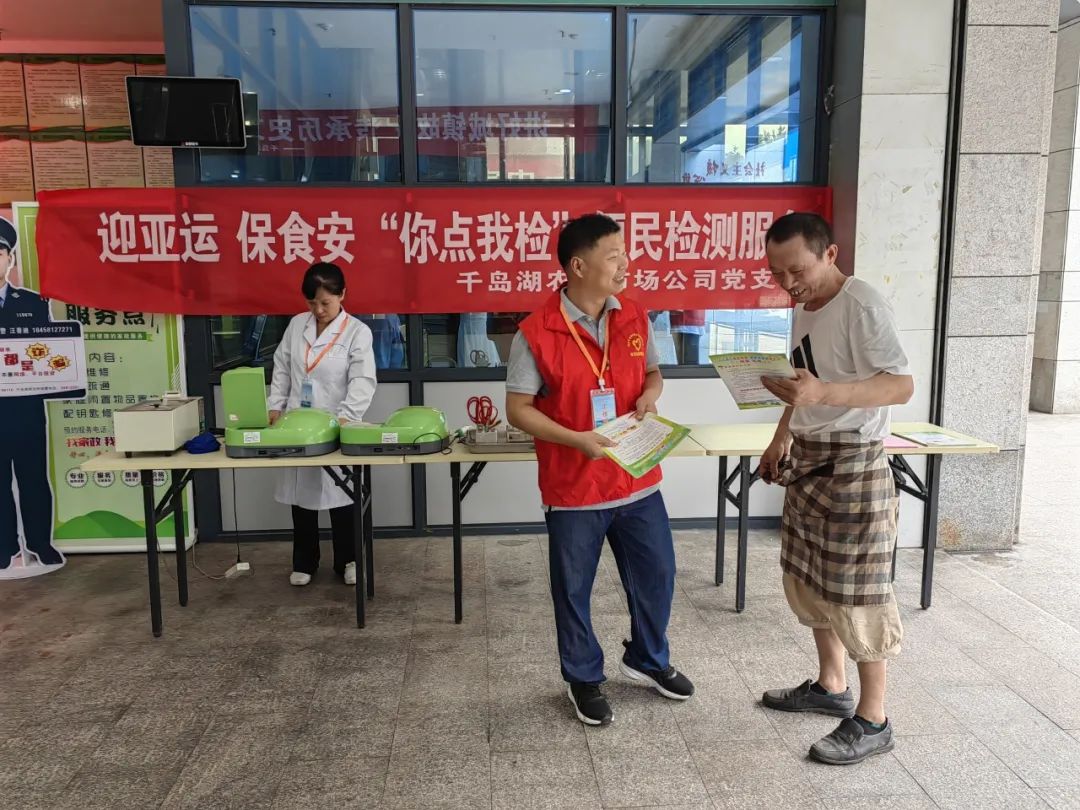 “你们这里是卖什么东西吗?”一位约莫60岁的阿姨满脸疑惑地问。经现场工作人员解释,原来这是农贸市场公司在推行“你点我检”便民检测服务基础上,同时结合党员志愿服务岗创建,组织党员干部开展以食品安全宣传为主的“迎亚运 亮品牌”新时代文明实践志愿服务活动。