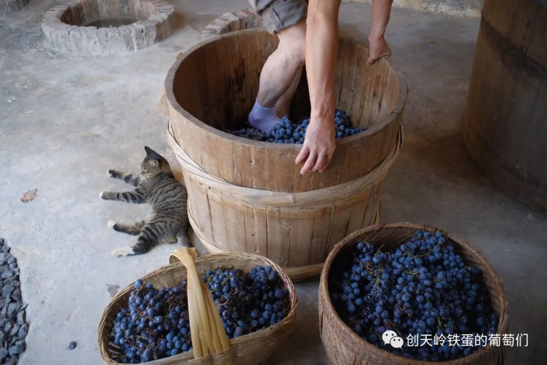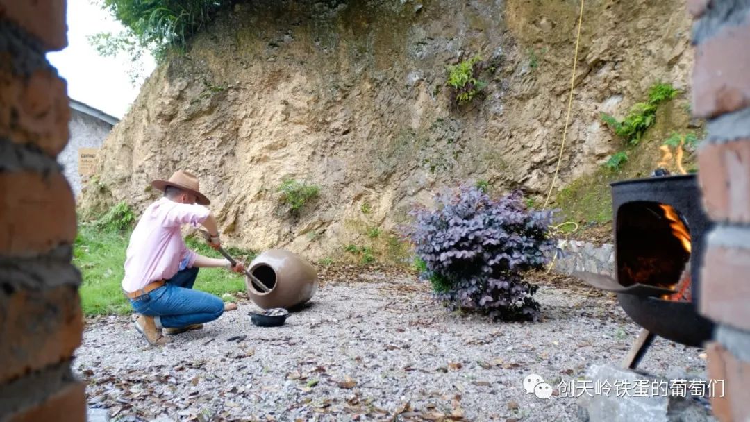 你要问,既然有了雪峰山易活的苗,为何还要繁殖本地这么硬核的品种?因为她们的果实有细微差别。雪峰山葡萄从发芽、花期、结果、成熟的每一个步骤都比我家山上的品种晚两周,她的果实皮更薄、天赋糖分更高,但也更脆弱、丹宁不足,像是李煜的词,有点儿靡靡之音的意思;而创天岭的葡萄皮厚且硬、力大势沉且极抗病,几乎不用农药保护,果实风味浓郁,好比苏轼的词,全是大江东去、惊涛拍岸。这苏东坡风格的葡萄终究是我的基本盘。我计划过两年来一波混酿,看看有没有惊喜。葡萄苗们从这个样子长大到能够挂果,我姐夫在云南的园子里只要2.5年。是的,我家基本上现在是个葡萄世家的状态,有不同的人在不同的地方种葡萄。而在我湖南老家的山上,需要4年。一般的酿酒佬,熬到四年后的今天,基本上从山西挖煤带回来的钱也已经花完了,老婆抱着孩子因为耐不住山里的清贫也跟山下的老王跑路了,于是热情已远不如创业当初。在这个阶段,有50%的酿酒佬因为资金链断裂已经退出红酒产业,把小苗拔了卖钱,回城里上班去了。剩下那一半像我一样意志额外坚定、老婆相当靠谱的,或者纯粹是钱还没烧完的,第四年春天终于看到了葡萄架上发出的新叶,觉得今年大有可为。湖南的春天雨水猛如虎,芽们发得迅速,一周得用手抹一次,像这样一根根枝条抹去冗余的芽。这个季节,山里的油桐花开得妩媚呀,但与酿酒佬无关。他的所有时间都在抹芽、除草,连狗都比他空闲。小心翼翼度过春天,夏天的枝头终于挂了果实,四年的辛苦第一次见到了葡萄本萄。它们长得又大又圆,一个雨后的夏日夜晚,直径能胖一圈。眼见着夏天过了一半,秋天还会远吗?接下来的问题是早做准备该用什么来发酵呢。法国人和我们宁夏贺兰山的老哥用装了制冷设备的不锈钢大罐,一只10吨的都有;美国乡下的农民用大木桶,外面盖冰块;你如果跑下山去问村口的大娘,她说干脆用10块钱一只的塑料桶。不管用什么,现在趁农活儿不忙,就得备着去。我的办法是学习格鲁吉亚人,将陶罐埋进地里,依靠土地的热传递来控制发酵温度。这里,我得批评一下山下的大娘,她这样操作是十分危险的。念过葡萄酿酒工艺学的你一定知道,葡萄发酵过程中影响甲醇发生的主要因素有两个,一曰发酵温度,一曰浸泡时长。浸泡时长很好控制,但对于发酵温度,大娘是压根儿就没打算插手。于是,大娘的塑料桶一般在第三天就开始烫手了,黑操作半个月下来,真拿出来喝时,酒味儿基本没有,但别的味儿要什么有什么。喝了还是比较容易出事。我的目标是在秋天天气转凉的季节,我埋在地下的陶罐内基本保持在20度出头为最理想,经过多年监测,在十月份是可以实现的。去年(2022)湖南大旱,葡萄异常早熟,9月20左右就开始采摘,夏意正浓,以至罐内温度几乎出现过25度,实属罕见。就果酒发酵而言,温度越低、发酵时间越长,酒精度越高,因此去年的酒精度略果然偏低。埋罐子也是个技术活儿。先得用柴木火把陶罐内壁烤热了,再将烧得滚烫的蜂蜡刷在内壁上,把内壁的气孔们都堵住。这样,在长达几个月的发酵过程中不至于内壁呼吸而获得过多氧,导致醪糟氧化过度,不能产生足够酒精。但又不能堵得死死的,像不锈钢罐一样完全不能发生呼吸,那样罐里装着酒埋在地里再多年份也不能陈化。填埋陶罐用的是粘土、石灰与小石子的混合物,经水冲洗下去后会紧密附着于罐的外壁,促进陶罐与土地的热传递。夏天的准备工作做完后,也入秋了。秋风凉、秋叶黄。不用农药控制的话,葡萄许多叶片染了霜霉病,变得火红。随着果实糖度一天天升高,吸引来马蜂与鸟儿都来园子里置办年货了。等到深秋,小动物们吃剩下的葡萄们糖度酸度都入了化境,就得天天盯着天气预报千万不要下雨。这个时候要是来两三天秋风秋雨愁煞人,轻则昆虫与霉菌暴发,重则果粒爆裂,一夜回到解放前,只能等第5年从头再来。如果碰上这一茬,那50%有毅力的酿酒佬也有一半扛不住,基本都回家洗脚穿好袜子准备下山了,剩下25%的还能进入第5年的角逐。好在湖南山区深秋是一年中最干燥的季节,难得碰上多雨的年成,我几乎年年都能安全度过这一关。每往前赌一天,都是胜利的一天,这一天没有下雨,葡萄含糖量上升了一点、风味更浓了一点,感觉又胜了老天爷一着。然后突然某天,趁着老天爷还没反应过来,以迅雷不及掩耳之势全家老少出动将葡萄一早晨就采光了扔进木桶里踩烂,就倒进罐里发酵了。中国农业大学的李华教授写了一本书叫作《葡萄酿酒工艺学》,写得很好,完美解释了从这一刻开始接下来几个月罐子里发生的所有事情。当然了,法国的大兄弟是用不锈钢罐装葡萄浆发酵,他们先给葡萄浆里通二氧化硫,杀死所有小生物,罐子里成了生命的真空。然后投放人工培育酵母进去主导发酵。人工培育酵母的生命力与抗二氧化硫能力要远远强过自然界的野生酵母,所以这件工作,它们干得高效又靠谱。然而我们乡下人,不太信任工业产品,是不愿意给葡萄浆通二氧化硫,也不投喂酵母的,基本上,木桶里、葡萄皮上自带的野生酵母菌就够用。只是发酵启动得更慢,风味更不可控而已。一开始那几天,每天还得拿根棍子进去捅一捅,给酵母菌喂充足的氧气。这几天它们参与的都是有氧反应,基本是不产生酒精的,等到酵母菌的种群达到超级大的数目,我会突然将罐口盖住,用蜂蜡