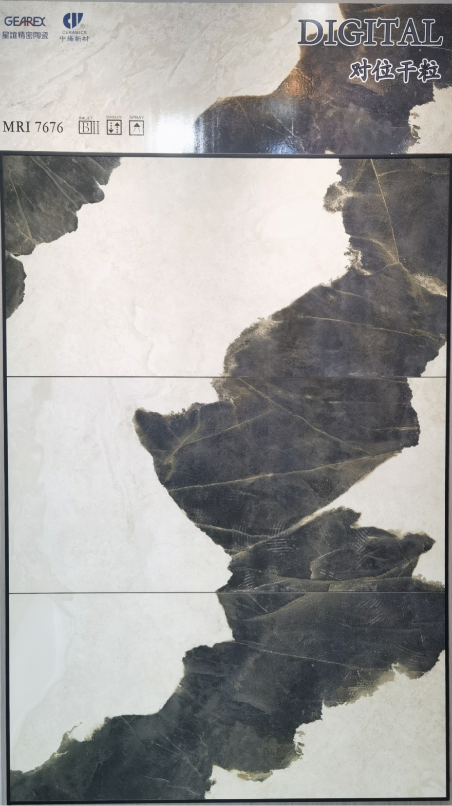 陶瓷材料有天生的质感。近几年大家追求数和颜色,通常可以用很简单的喷墨工艺实现效果。很多研发人员觉得什么图案都可以生产尝试,但其实没有新的产品、没有新的方向,这是我们在数码方面碰到的瓶颈。星谊和中扬推出了一个数码叠加的工艺,除了数码微模,还有数码的辅助墨水,叠加有些釉料的效果,做到哑光微模经典胶水专业的部分。