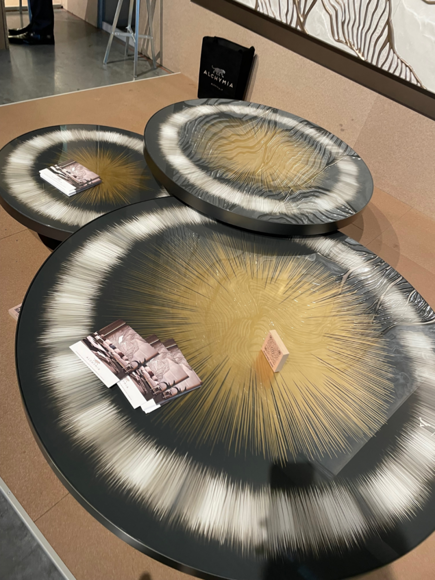 目前行业不景气,尤其是材料供应方卷得特别厉害。瓷砖企业追求成本降低,会把压力给到工厂,工厂则会将压力给到材料供应商。所以现在的材料供应商不仅要提供技术服务,甚至还要保证良品率90%以上。内卷主要来自于焦虑。星谊在北美销售瓷砖,情况同样不乐观。这一波的不景气,绝对不是只有我们国内,全球都是这样,通胀、地缘政治冲突、消费信心不足。从宏观上讲,这就是大环境。从市场面来看,To B业务量骤降,传统经销商渠道固化,大家只有在价格和服务上不断地竞争。生产方面,规模化生产难以维持,降成本压力进一步升高;产品面,缺乏突破性方向,研发投入趋于谨慎,所以只能追求产品烧成时间更短,节省材料,从质量管理角度来说,是在向下,而不是上升。从技术角度上我们提出几个方案:一是产品应用外展,二是产销体系外展,三是全球布局外展。不能只将瓷砖当作墙地砖材料思考,企业可以从底到面针对不同应用环境重新打造产品。现在大家在图案的选择上还是看一平米连纹。以家具板块来讲,根本不用思考连纹,要思考的是整体的布局是否正确。二是,坯体上是以墙地砖的坯体材料为主,并没有考虑到其他台面上的应用。由于没有跳脱这样的范围,所以行业在不断内卷当中。大家可以看一下我们从米兰家居展中收集的一些照片:第一个是石材。石材加工在不断进步,在家具中的应用不断拓展,下面是一些立体应用。二是各种材质的竞争,金属、水泥复合材料,塑料和有机复合、木料、纤维和编织料。这些领域进步非常快,尤其是引入喷墨设备后,制作出来的产品,和瓷砖很像,但价格却较低,而且施工简单,甚至用的是有机材料,发色范围更广。以美国市场来看,大部分的酒店地板生意都已经被有机材料取代了。● 金属