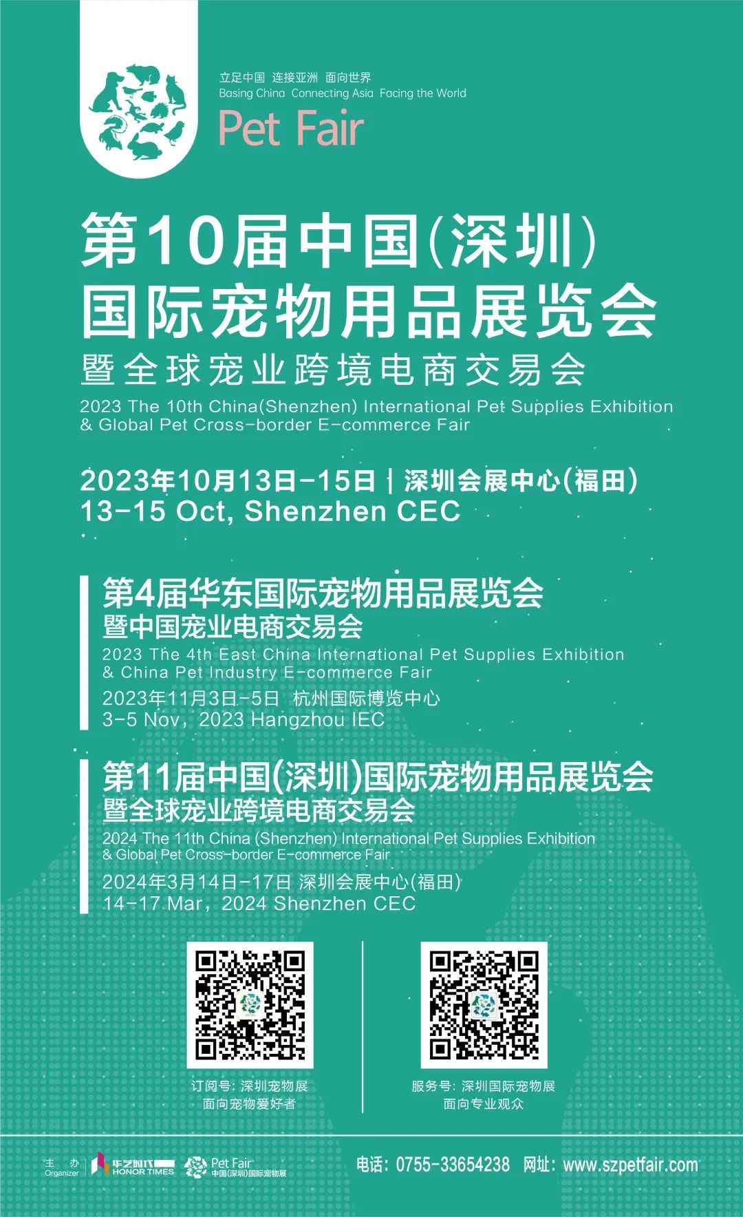 温馨提示:专业观众(宠业经销商、代理商、电商、门店、宠物医院等),敬请关注深宠展服务号,“深圳国际宠物展”。长按以下二维码添加客服号,加入深宠展全国宠业交流群。