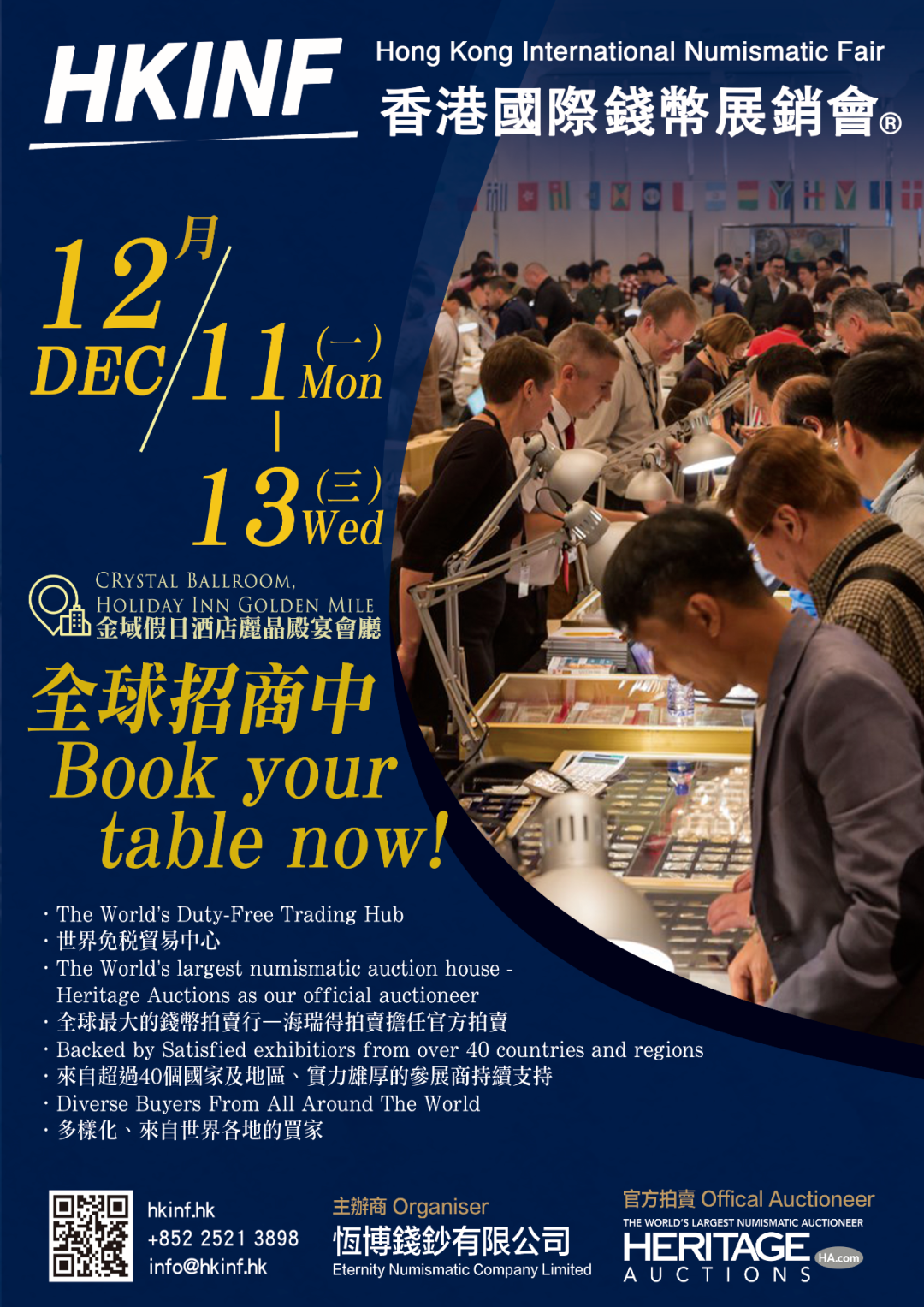 展望2023年12月,第十一届「香港国际钱币展销会」再度扩充,选址面积较大的金域假日酒店丽晶殿宴会厅。届时规模更大,可容纳更多优秀币商参与,吸引更多来宾,实在令人雀跃。