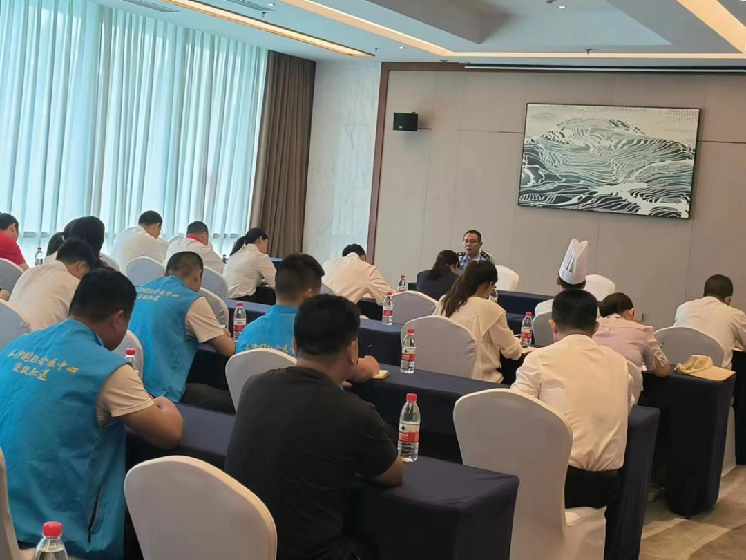 县市监局深入场馆内的食品经营单位,手把手指导相关负责人完善食品安全应急预案,要求供餐单位确定原材料供应商;对展馆负责人、场馆内食品经营单位及接待酒店进行了集中约谈,并对食品管理人员及主厨、配菜、采购等60余位食品相关工作人员进行了食品安全培训,要求工作人员严把食品安全关;要求各电梯维保单位对电梯进行一次全面维护保养,并在展会期间派遣维保人员24小时现场值守,筑牢食品安全和特种设备安全防线。