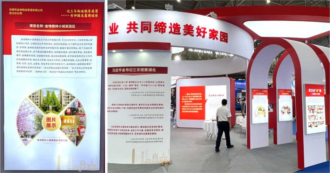 武汉是英雄的城市,更是红色物业的先行者。此次物博会红色物业特色展区内,更彰显了英雄城市本色。金地智慧服务集团华中区域公司党支部于2017年3月28日成立,隶属于洪山区物业行业党委。通过打造红色物业,让物业服务在党建引领下充分发挥专业优势,切实解决好群众最关心、最直接、最现实的利益问题,推动物业服务融入社会治理,夯实基层基础,打通联系服务群众“最后一百米”。