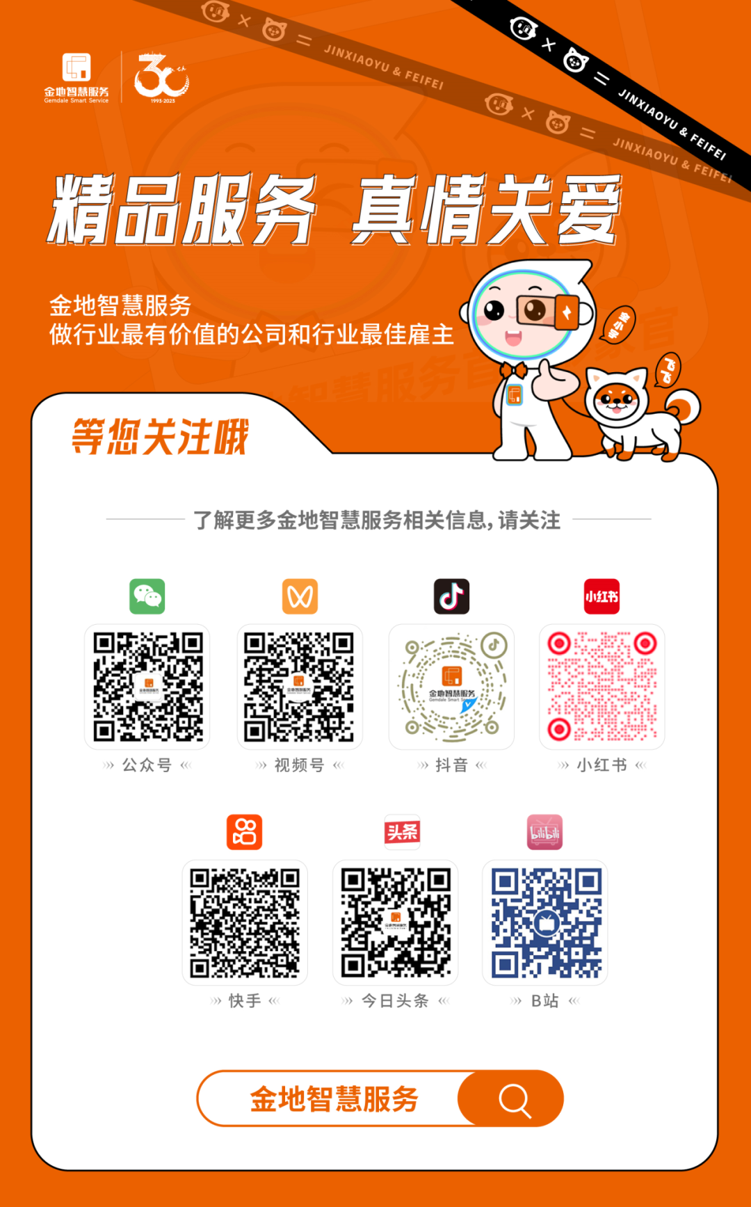 金地智慧服务1993年诞生于深圳,秉承“精品服务 真情关爱”的服务理念,30年来坚守初心、秉持匠心,面向未来,启动“3+X”战略布局,住宅物业、商业物业、城市服务、空间科技及团餐服务五大业务版块全面发力,截至目前,服务覆盖近280余座城市和地区,服务超500家政府机构、开发商、知名大型企业总部、物业企业。合同管理面积3.85亿平米,SaaS线上服务面积3亿平米,搭建社区生活服务全链条平台,构筑全场景的服务增值生态系统,从社区走向城区,致力于成为多业态覆盖的综合服务运营商。