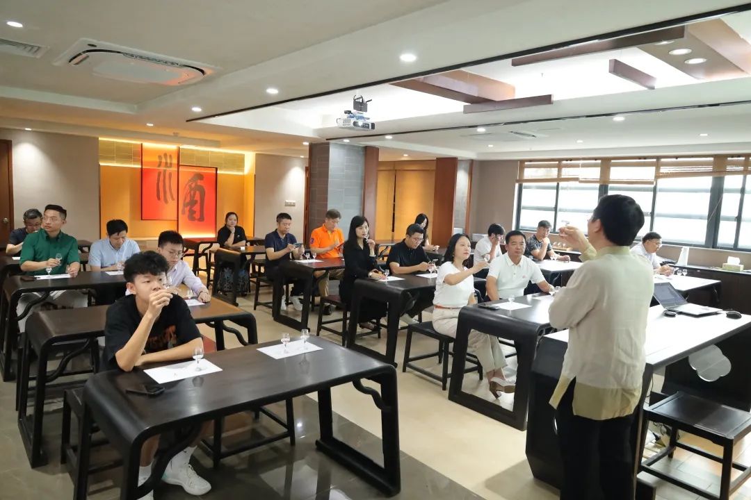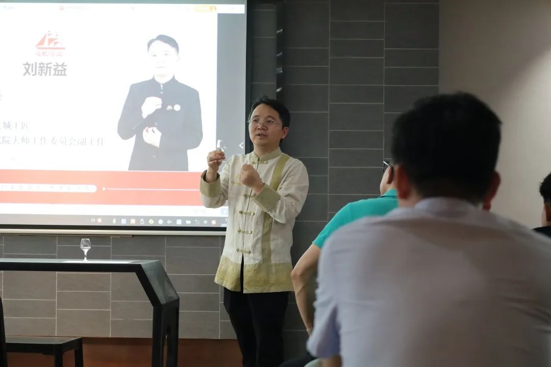 “观、闻、品、回”,中国白酒评委刘新益大师现场分享品酒经验。代表团纷纷赞道双蒸1821酒庄酒齿颊留香,回味无穷。