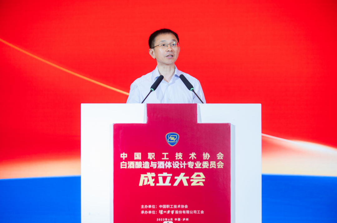 中国职工技术协会理事长,全国总工会原副主席、书记处书记李世明致辞新时期孕育新机遇,新机构展现新作为。中国职工技术协会理事长李世明最后强调,中国职工技术协会白酒酿造与酒体设计专委会是白酒行业首个以职工技术为纽带的全国性机构,中国技协因中国职工技术协会白酒酿造与酒体设计专委会的成立,正站在全新的历史方位,希望各会员单位尽职尽责,把白酒酿造与酒体设计专委会,建设成全会的模范专委会,用更多的品牌活动,广联促商,协同发展,更好服务国家科技战略、企业创新发展和职工技能提升。