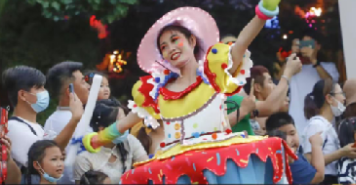 花车巡游啤酒女神宁卡西携酒瓶宝贝、醉熊猫及小伙伴们倾情打造奇妙、幻美、神秘的视觉盛宴。花车巡游演出形式多样,包括小丑互动、杂技表演、军鼓乐团演奏等热闹非凡,现场充满欢乐与感染力,沉浸式感受啤酒文化带来的独特魅力。