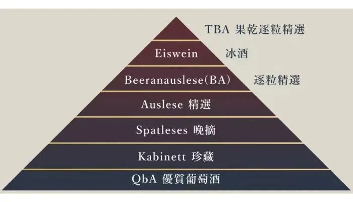 德国分级制度的基准为葡萄的成熟度,因成会影响酒精浓度。