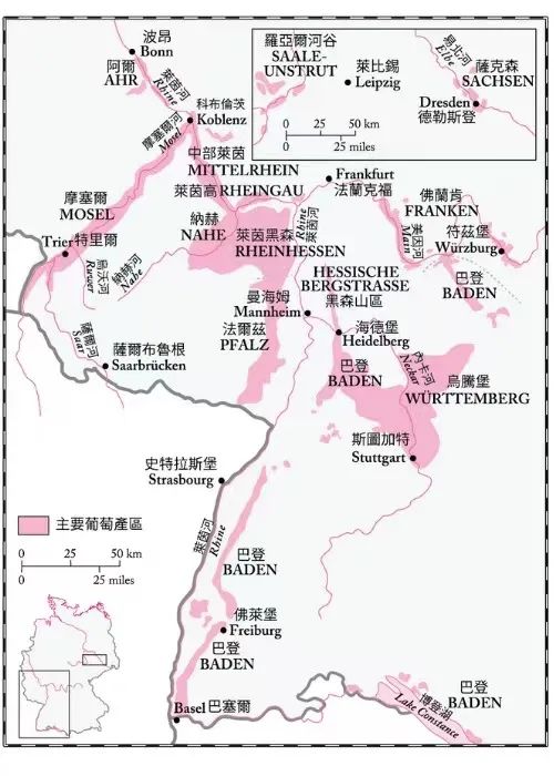 不过,凯乐(Keller)魏特曼(Wittmann)等酒庄,在部分内陆庄园也展现巨大潜力,佛兰肯产区(Franken)的西瓦娜葡萄一分出色,常用来酿造强劲、带泥土味的不甜葡萄酒。