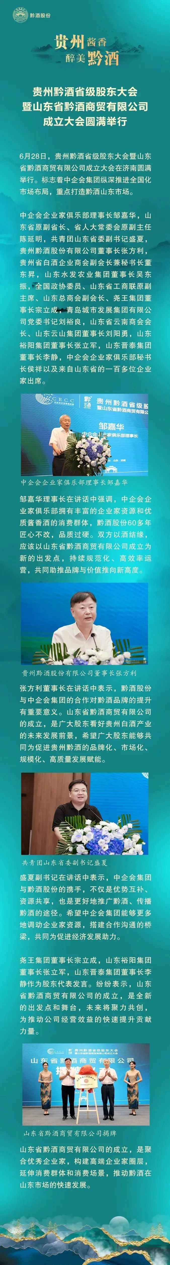 贵州黔酒省级股东大会暨山东省黔酒商贸有限公司成立大会圆满举行