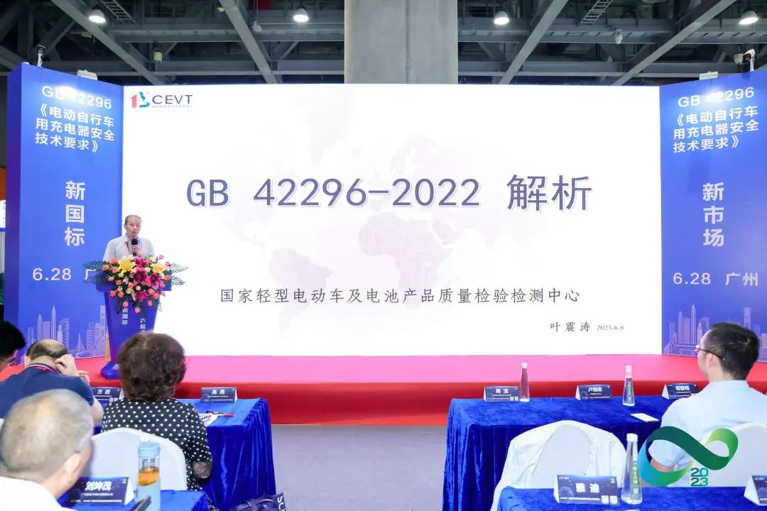 为响应两项国家标准实施(GB42296-2022《电动自行车用充电器安全技术要求》、《摩托车、电动自行车乘员头盔》(GB 811-2022)),展会现场举办了GB42296《电动自行车用充电器安全技术要求》对标会;设立了新国标充电器集中展示区、头盔展区,为渠道商提供了众多符合新国标的充电器、头盔产品供采购遴选。
