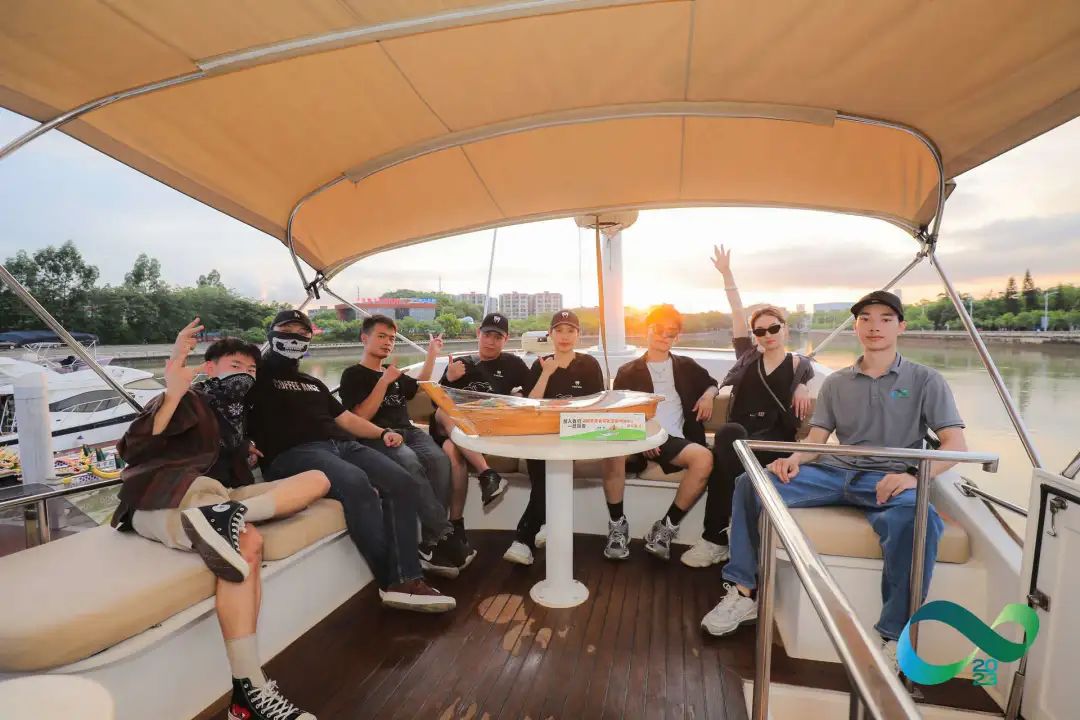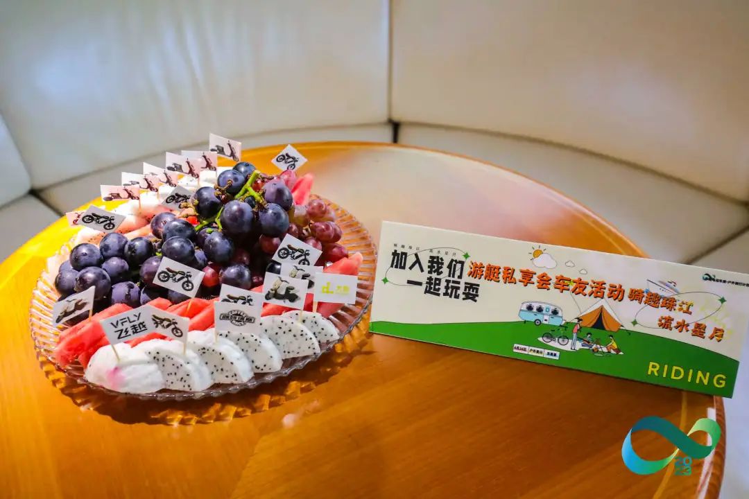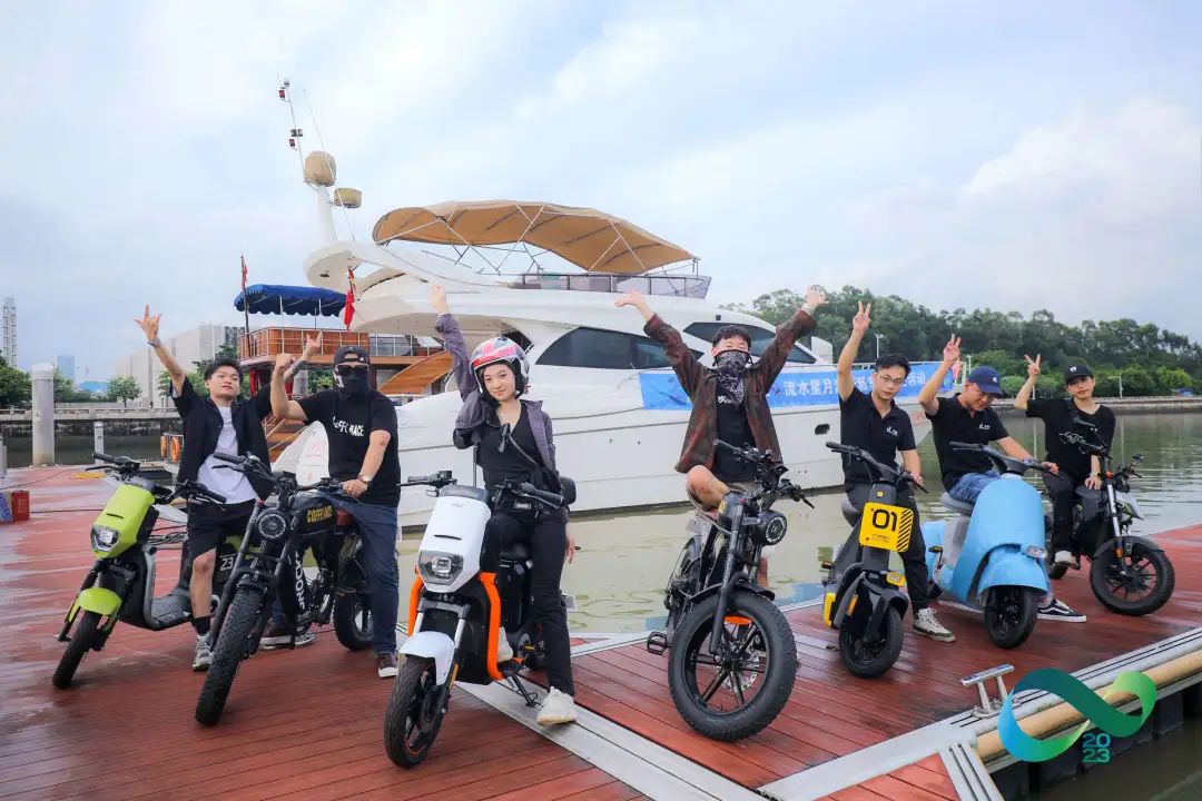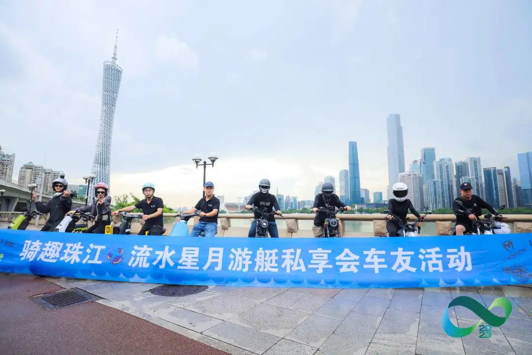 除了可以在展馆内体验机车露营外,开幕首日下午同期举行“骑趣珠江·流水星月游艇私享会车友活动”。有来自摩兽、大形、VFLY、咖啡瑞斯等电动车品牌的车友们打卡广州塔,经过珠江琶醍啤酒艺术区、广州会展公园、保利世贸博览馆最终到长洲岛五洲游艇码头乘船体验羊城夜景。