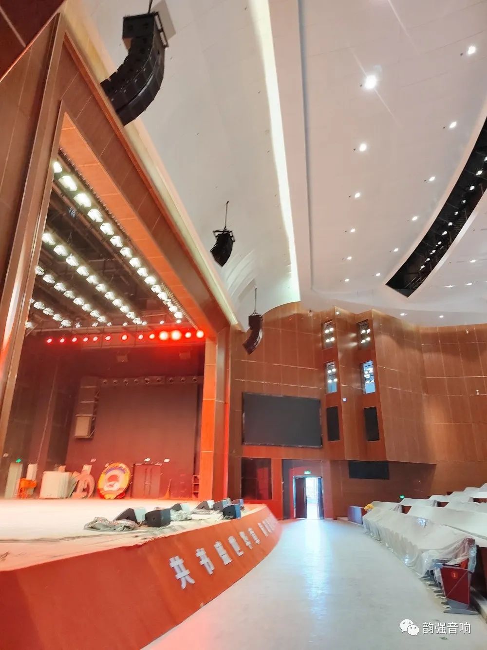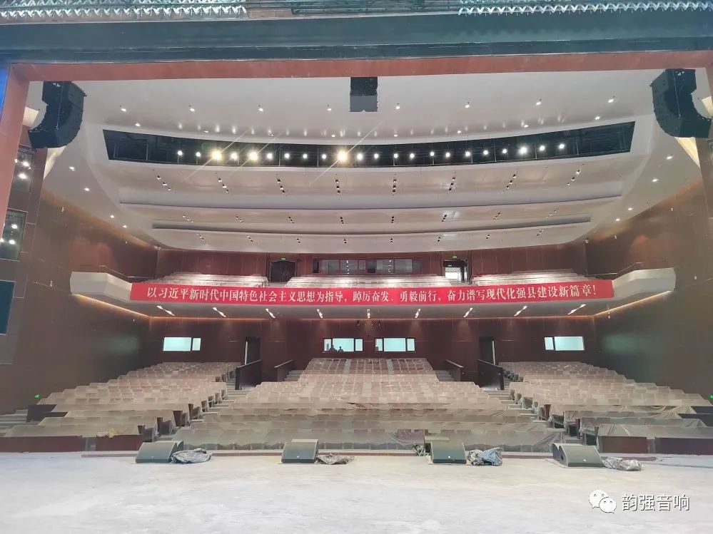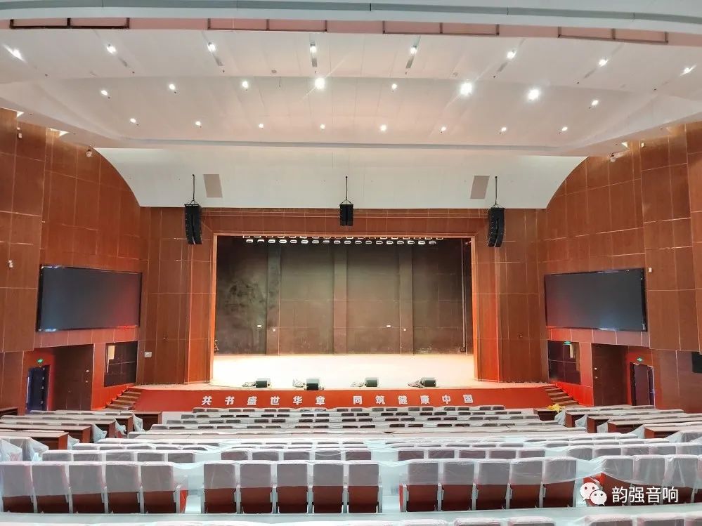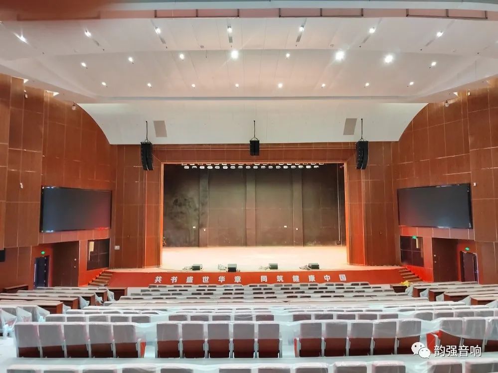 扩声系统采用左中右声道设计,左右声道由6只LA210+1只LA210线阵列组成。拉声像由6只LA210线阵列组成 ,超低系统2只W218则安装在舞台两侧八字墙内,进一步增强低频下限。舞台上安装有4只SN122M作为返送扬声器,覆盖舞台表演者的反馈需求。