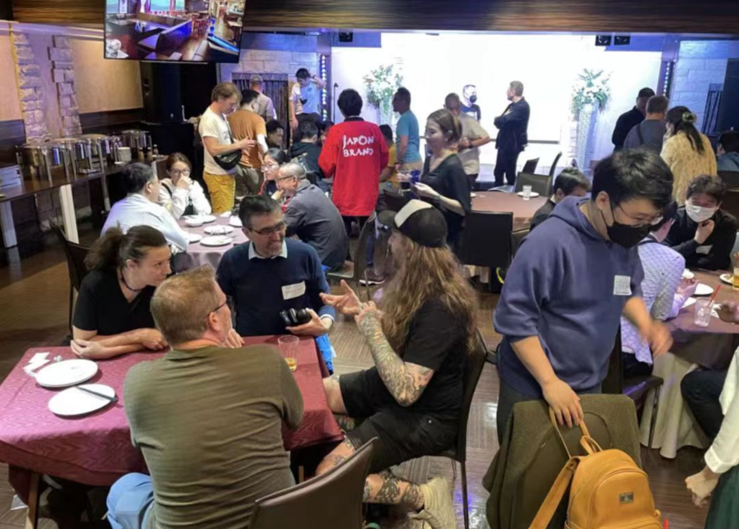 大家吃吃聊聊,一方面交流,也是放松。毕竟后面2天要迎接海量的观众玩家,可能就没有精力互相交流了。我们SHADOW做这个“桌游之夜”活动,历史要追述到2016年,当时我们甚至都没有自己办展,而是作为参展单位去的。