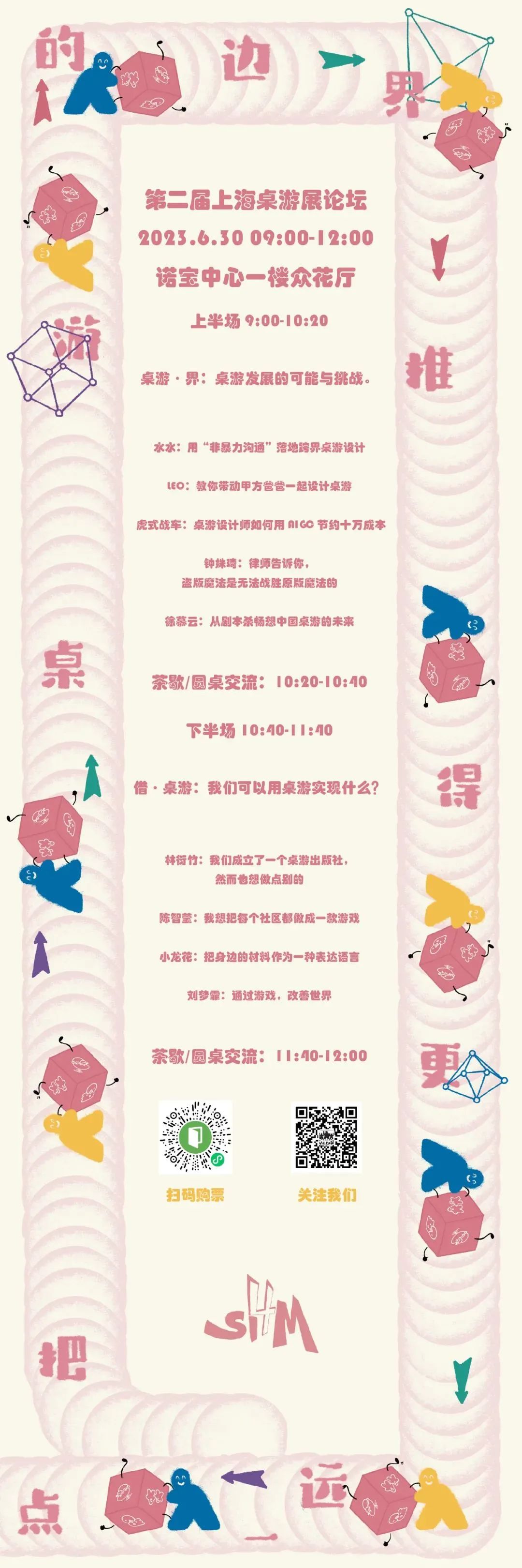 第一届论坛的主题是“万物皆可桌游”,我们邀请了几位行业内外的嘉宾为大家分享了桌游与不同领域结合的可能性。而本次论坛,我们将继续邀请一些具有想象力和行动力的嘉宾,一起“把桌游的边界推得更远一些”。