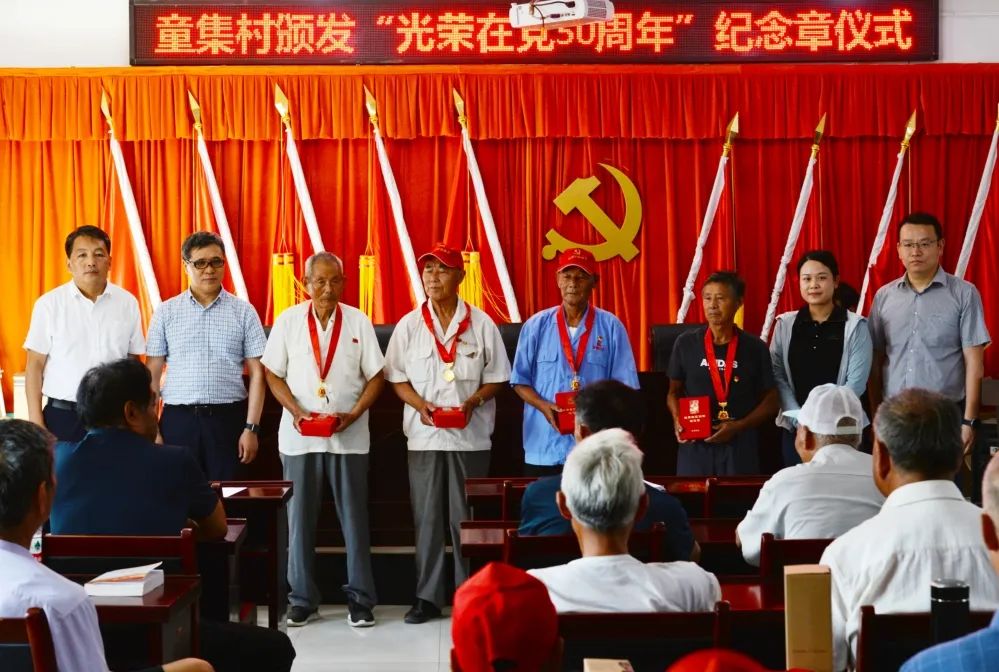 在童集村,陈杰一行对在村党员代表进行座谈慰问,并为4名老党员颁发“光荣在党50周年”纪念章。会后,他叮嘱驻村工作队要关心照顾好村里党员生活,切实帮助他们解决生活中遇到的实际问题,切实把党的关怀与温暖送到党员和群众心坎里。