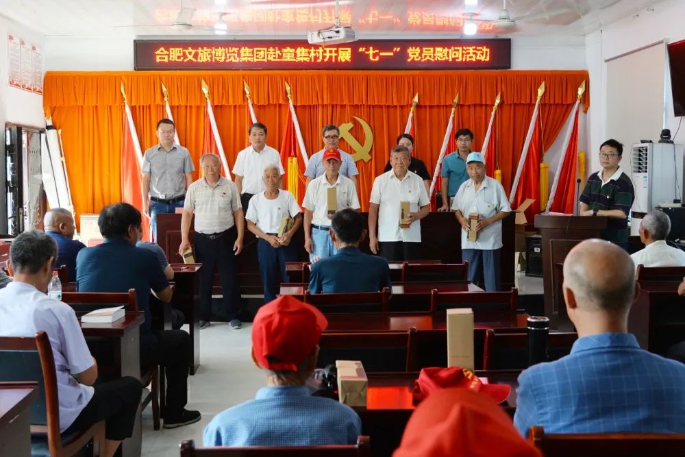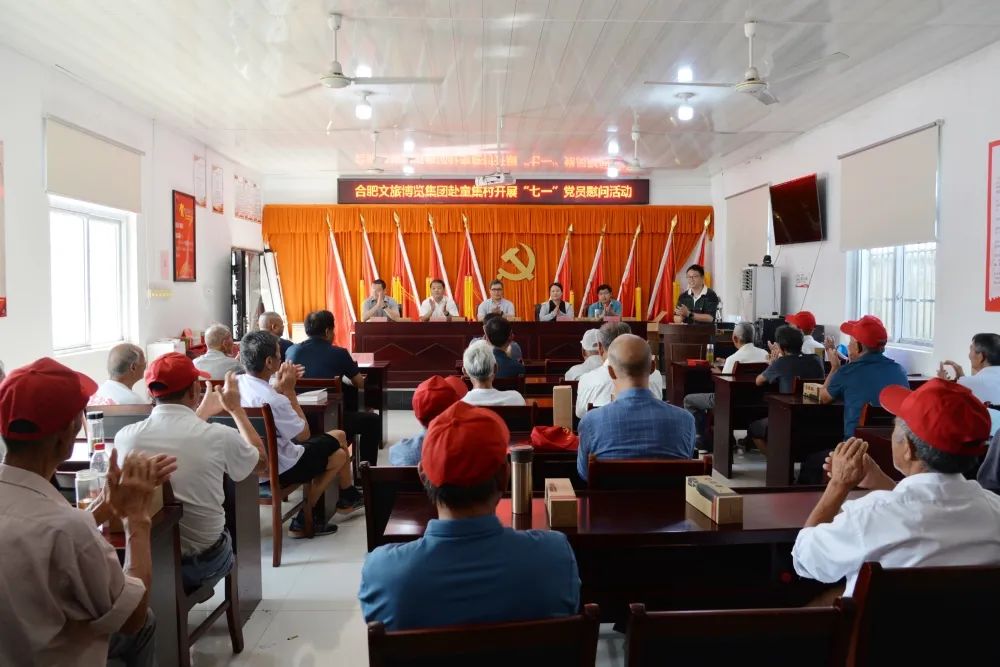 6月28日,合肥文旅博览集团党委书记、董事长陈杰率队赴庙岗镇,对童集村100名在村党员开展慰问活动。庙岗镇党政主要负责同志、尖山湖逸趣园董事长及相关负责人参加活动。