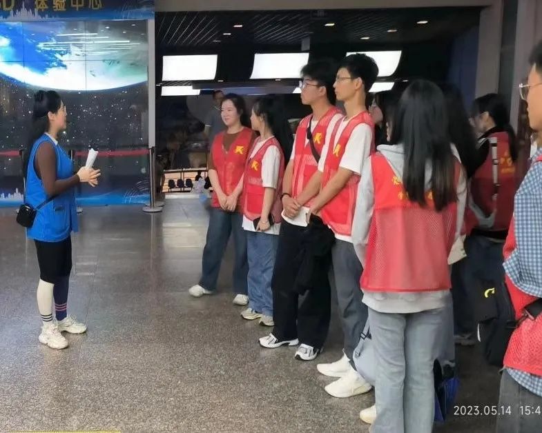 同心守护,志愿有你。科技馆内担任志愿者为游客进行解说。