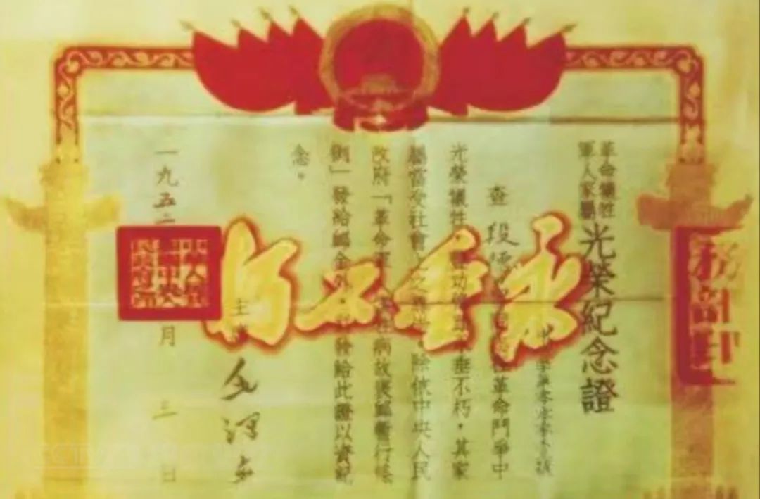 “革命牺牲军人家属光荣纪念证”