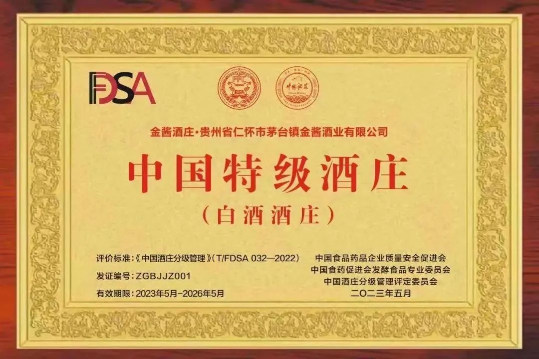 金酱酒庄建成于2016年,也是茅台镇第一家酱酒酒庄,年接待全国各地游客平均2万多人充分利用汪氏家族文化,茅台地域文化,酱酒文化等资源优势,将旅游要素全面融入酒庄功能,实现“酒庄+酒旅”的有机融合,早先被遵义市文旅局挂牌四星酒庄,近期更是被中国食品药品企业质量安全促进会、中国食药促进会发酵食品专业专委会、中国酒庄分级管理评定委员会评定授予 “中国001号特级白酒酒庄”。