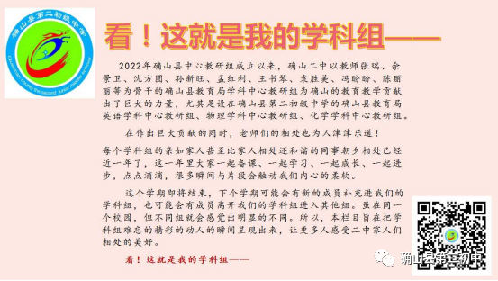 地承千古人文,理蕴万世精神,这就是确山二中地理组。确山二中地理教研组教师年龄结构合理,老中青相结合教学教研带动性强,是一支富有生机和活力的团队;是一支精诚团结、乐于钻研的团队;是一支业务能力强、具有奉献精神的团队。县教研室地理学科多次在我校召开现场观摩会,推介我校的教改,教学经验,受到了同仁们的赞誉和肯定。另外,地理教研组教师积极参加各级培训,我校地理教师的理论水平和教育教学能力有很大的提高。 地理教研组全体教师在组长陶新胜的带领下能深切做到为人师表,爱岗敬业,知人善教,热衷教研,深受学生喜爱 。中小学一级教师、市优质课一等奖、确山县优秀教师、确山县师德先进个人、确山县地理学科专家库成员,在市县论文竞赛中多次荣获一等奖。多年来,地理教研组全体教师在教学过程中渗透德育教育,将爱融入教学, 与学生为友,教学生做人,时刻铭记“德高为师,身正为范”的要求。在教学过程中,我们着重培养学生的地理核心素养,注重爱党、爱国主义教育,注重情境教学,注重理论联系实际教学,注重学生动手能力的培养,促进学生全面发展。地理教研组教师在地理教学中,充分发挥学生的主体作用,老师的主导作用。使用多样的教学手段和灵活的教学方法,活跃课堂气氛、深受学生们的喜欢和尊敬。在教研方面,认真学习和研究新课程标准,积极进行教研、教改,每周五下午坚持集体备课,认真钻研探讨教学教法,充分发挥集体智慧。天上之皓月繁星,地上之矿石宝藏;自然之山川河流,人文之城乡风情;远古之草木化石,未来之气候变迁;国内之人口经济,国外之政治关系都包罗在内。总而言之,天、地、人无不在地理研究范围之内。地理组全体成员将在学校这个大的平台之上展现出更多的能量,砥砺前行。