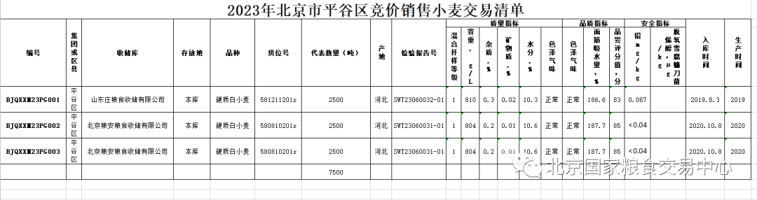 2023年北京市平谷区区级储备粮竞价销售交易会交易清单