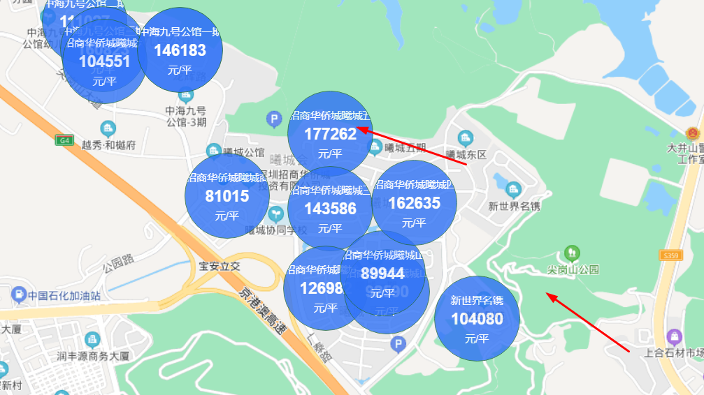 片区去年入市一些新楼盘,如尖岗山壹号花园(8.8万/平方,毛坯,已经售完)、越秀和樾府(9万/平方,带装修)等。总体在深圳严控房价下,该片区新房基本在9万的均价。