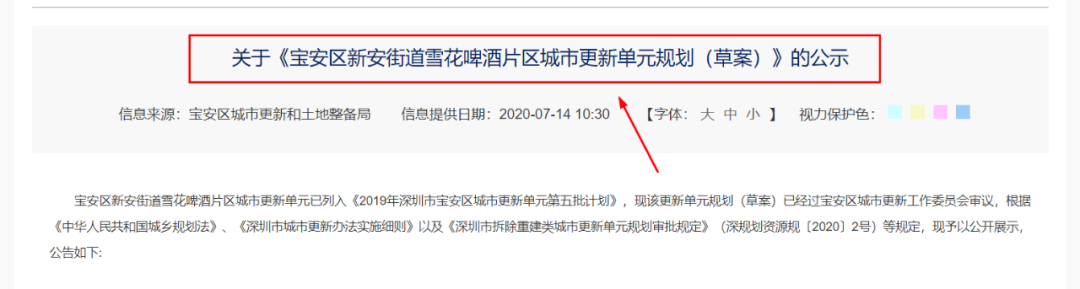 华润雪花啤酒总部基地即为新安街道雪花啤酒片区城市更新单元(前身是金威啤酒工厂),地处兴东地铁口附近,留仙大道的西面。