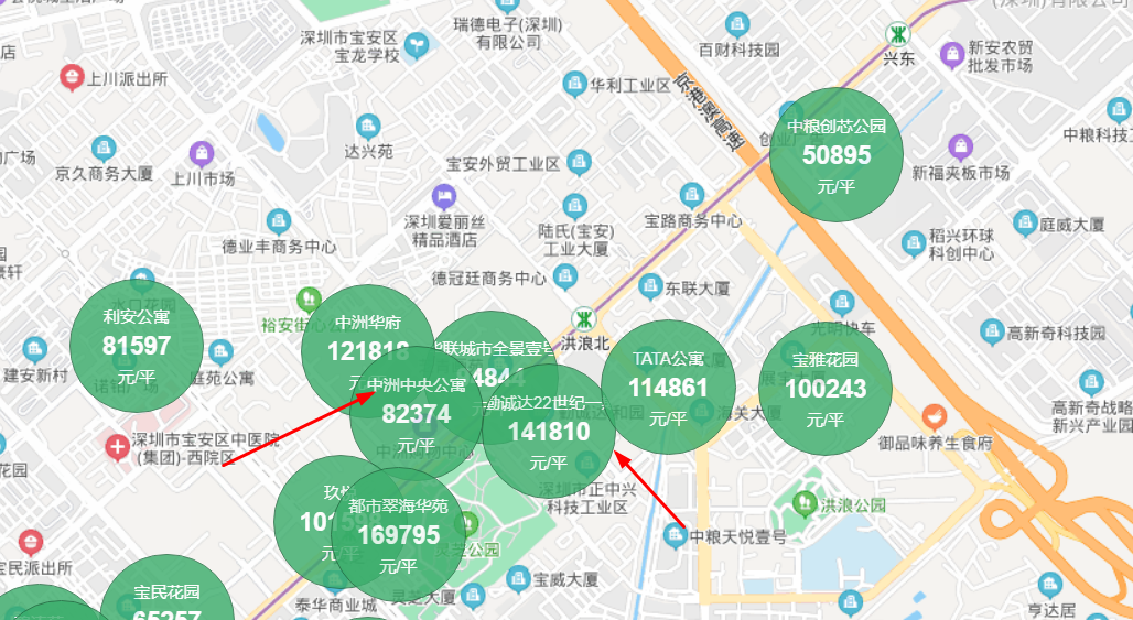 从贝壳网站看到数据,此片区需求大于供应,说明片区购房需求还是很充足。而观看片区的住宅分布,兴东片区住宅甚少,附近的住宅大批量聚集在尖岗山和洪浪北一带。