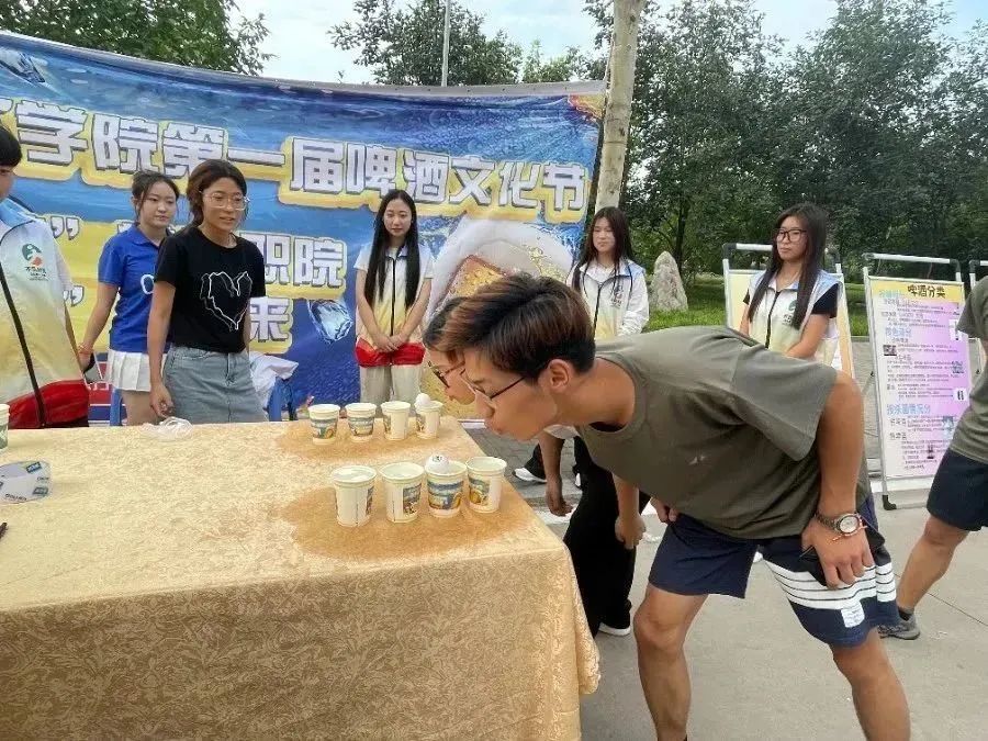 活动现场,设置了限时抢答、对酒当歌、水杯运球、啤酒文化知识宣讲等特色活动,现场氛围激情活跃,大家争相参加,品味我系自酿啤酒的独特味道;同时,参与现场小游戏环节、文化知识互动环节还可获得我系自制的啤酒和纪念品。活动不仅丰富了大家的课余生活,还向广大师生科普了啤酒知识与文化,在场师生纷纷点赞!