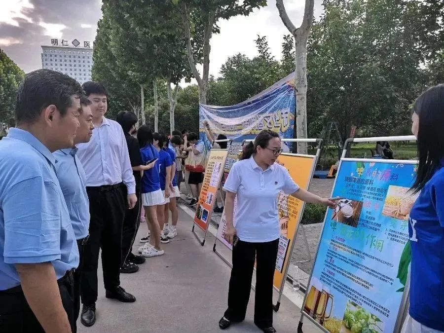 本次活动由我系党员教师指导,学生志愿者策划实施。前期通过酿造啤酒、问卷调查分析、制作展板、宣传海报、讲解练习等工作为此次活动做足了充分的准备!吸引了我校近千名师生前来参与。
