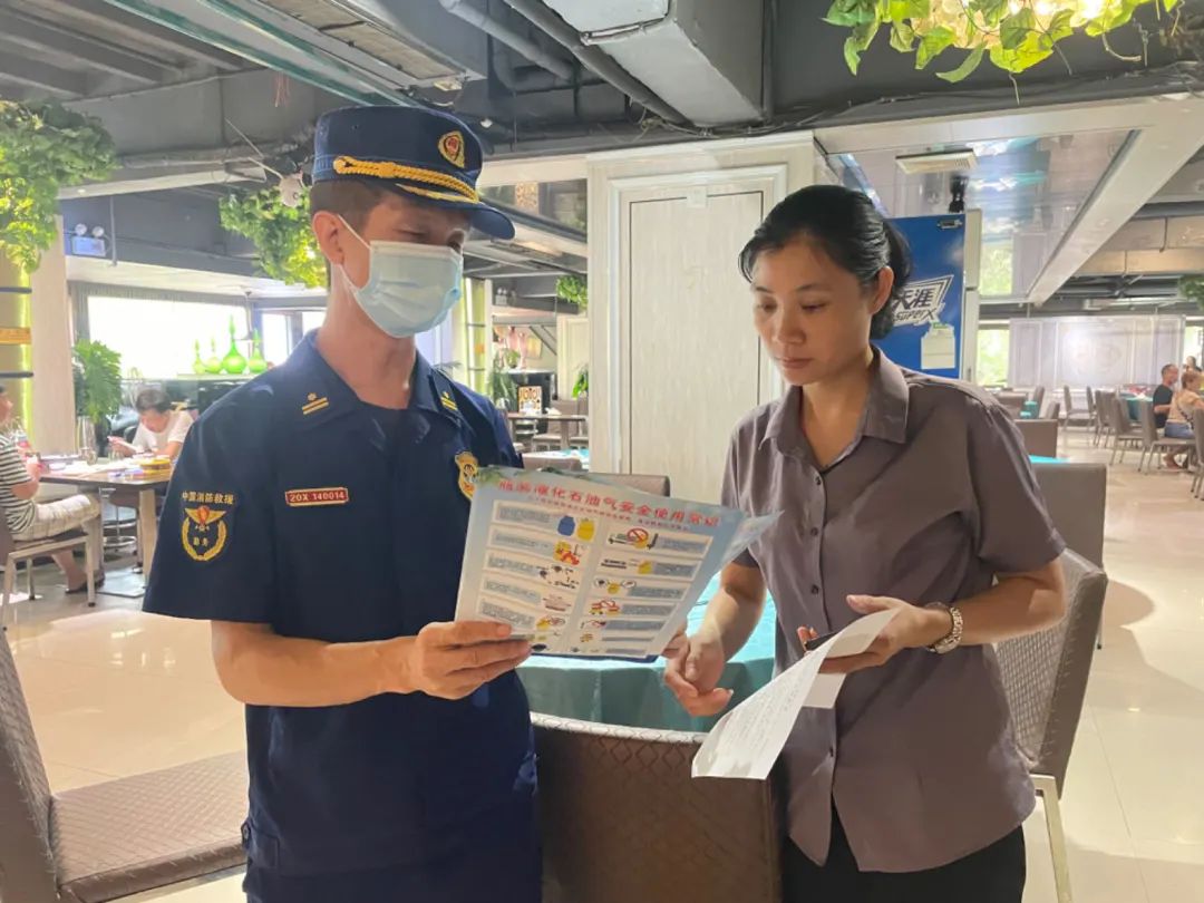 ▲苍梧、岑溪大队深入辖区餐饮经营场所全面排查风险隐患,同时严查使用天然气、液化石油气等多种火源行为。