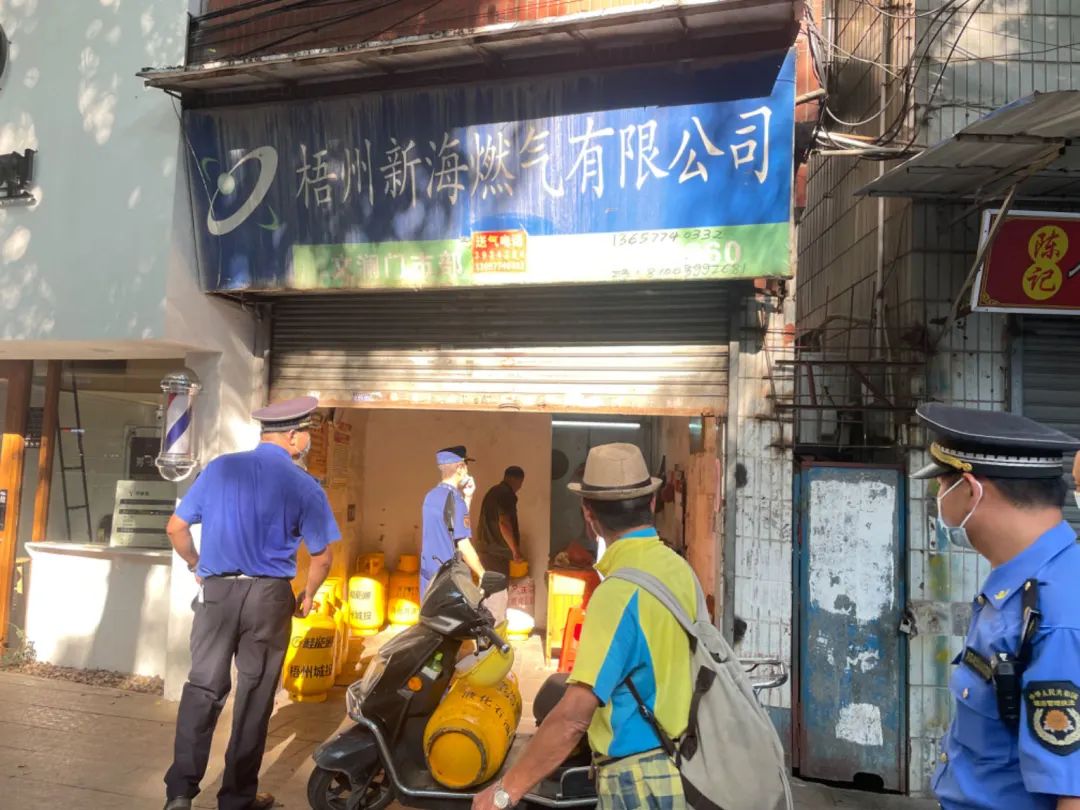 ▲万秀大队联合城市管理监督局深入辖区燃气销售点开展安全检查,并开展燃气安全知识宣传。
