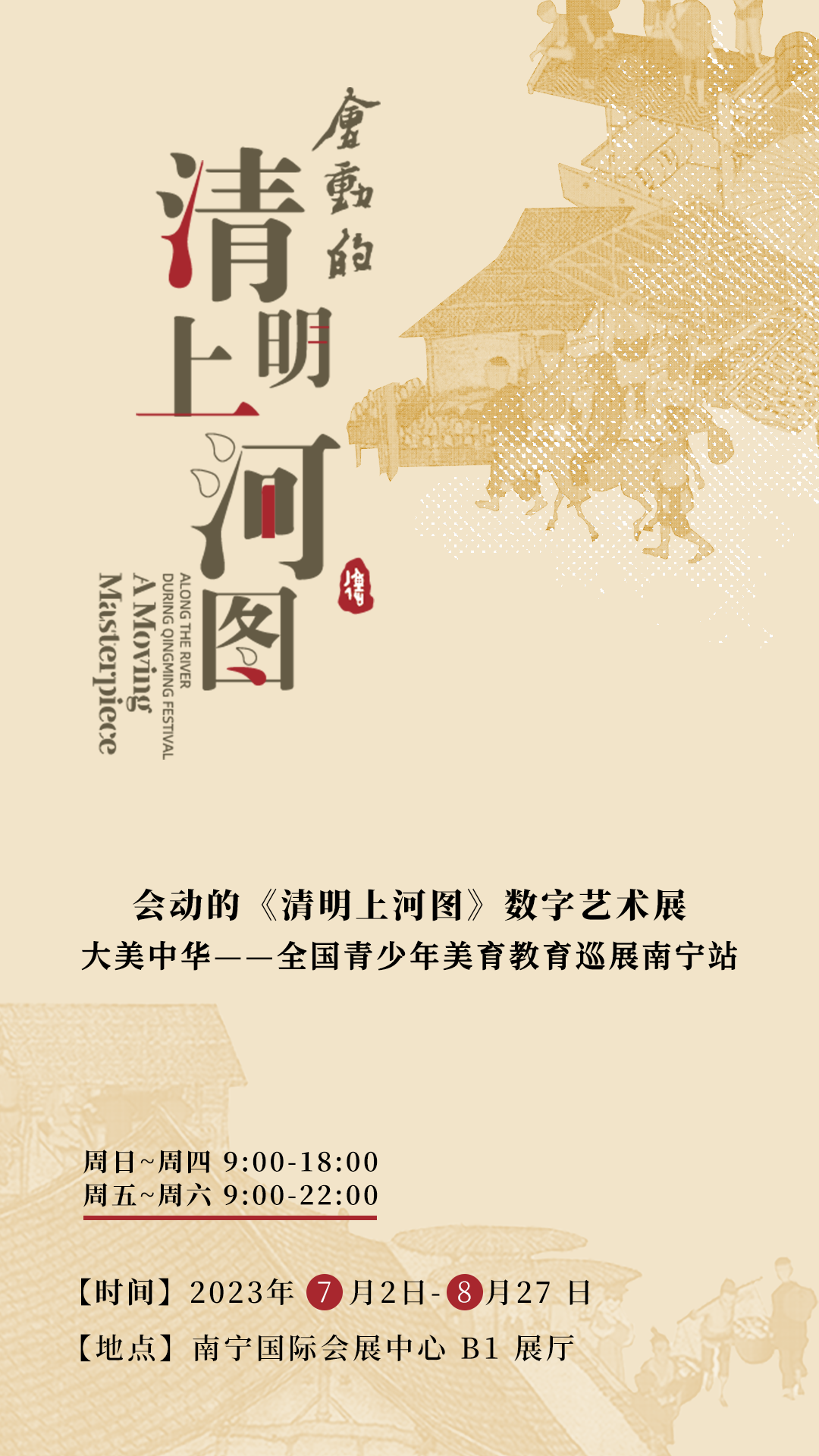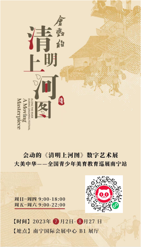 值得一提的是,《清明上河图》原作珍藏于故宫,每隔3-5年才能展出一次,且在故宫以外展出次数寥寥可数。此次动态版的《清明上河图》在南宁国际会展中心B1展厅展出,是广西的唯一举办地。