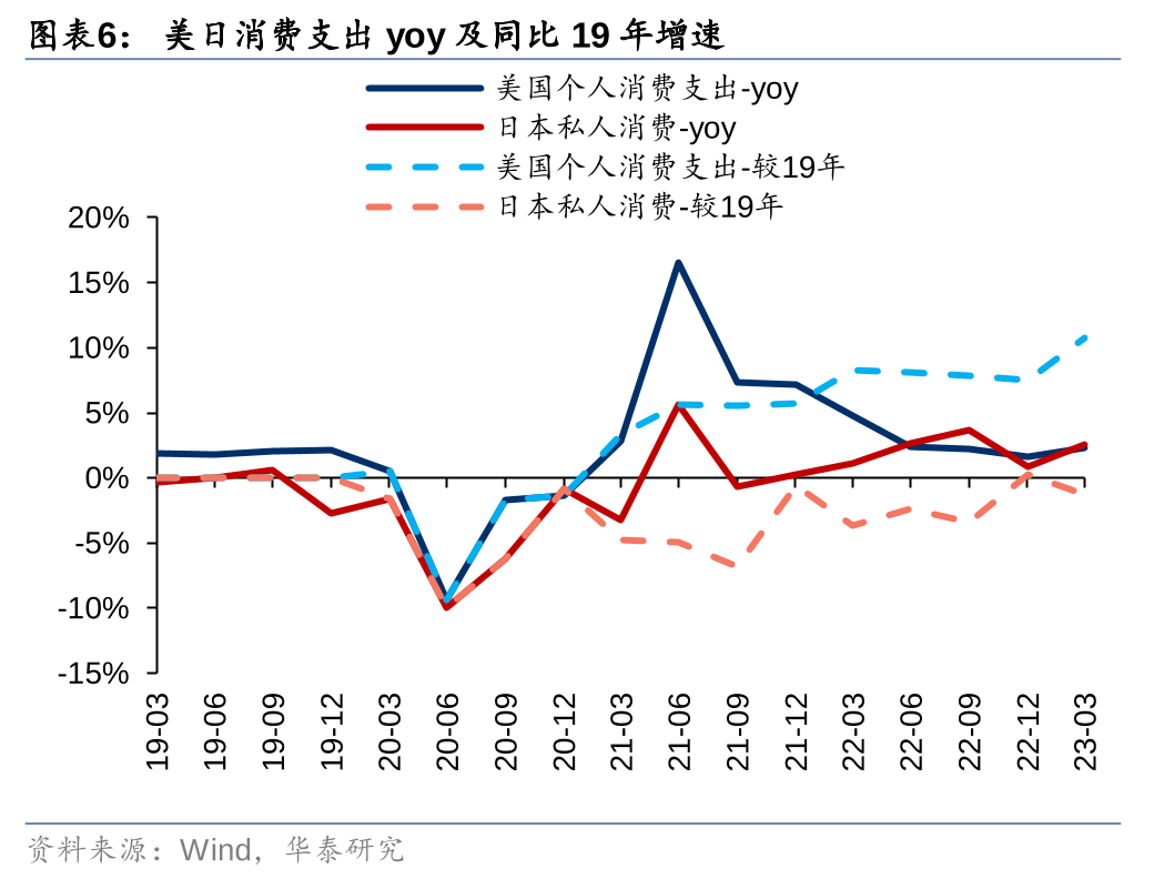 美国、日本分别于21Q1/21Q3出台疫情管控放松政策,此后消费力(居民消费支出)与消费场景(餐饮收入)连续多个季度实现高于疫前的修复弹性,回补属性凸显。从修复情况看,美国消费力的修复速度与弹性均高于日本,得益于2020年以来的三轮大规模财政补贴,美国场景放开后的当季度(21Q1)消费支出即恢复到了19年同期水平,且在此后9个季度均较19年同期高出10%左右,相较而言,日本经济修复相对较弱,私人消费于政策放开后的第4个季度(22Q4)修复至19年同期相当的水平。消费力支撑美国餐饮业较疫前实现显著超额修复,美国较高的经济修复弹性支撑餐饮市场复苏优于日本,从开店情况看,据Euromonitor,21/22年美国餐饮门店数持续恢复(同比+2%/+2%),而日本餐饮门店22年仍在持续出清(同比-3%),22年美/日餐饮门店数量为19年的97%/85%;从餐饮收入看,美国于21年2月超过疫情前水平,此后较19年一直维持双位数(25%-40%)增长,日本餐饮业的恢复速度和强度则相对较慢,到22年10月(放开一年后)基本恢复至19年水平,此后较19年维持个位数(1%~7%)增长。