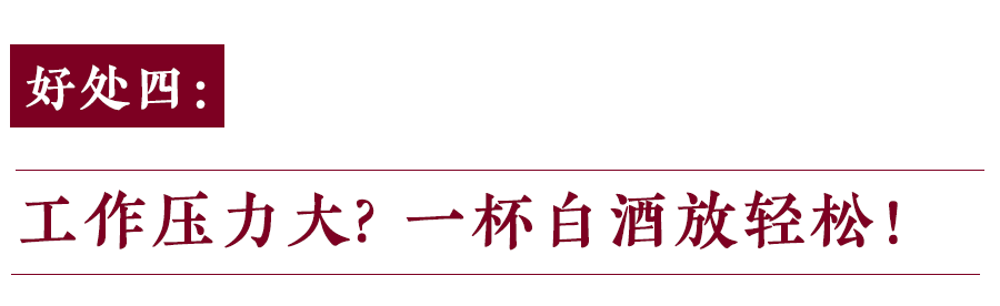 少量饮用白酒,通过酒精对大脑和中枢神经的作用,起到缓解疲惫,松弛神经的功效。白酒能够刺激血液循环,饮用者的身心会处于比较松弛的状态,少量饮用后会倍感轻松。但不要过量饮用,那会使我们的神经系统从兴奋到高度抑制,严重时还会破坏神经系统的正常功能。