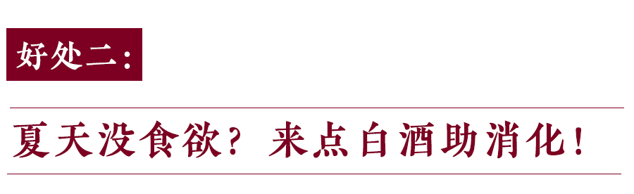 我们都有这样的体会,到了夏天各种没有食欲,不太想吃东西。在进餐的同时,饮用少量的白酒,能够增进食欲,促进食物的消化,刺激胃液与唾液分泌,能对胃起到一定程度的保护。除此之外,白酒也是很好的烹饪调味品,有很好的去腥、除腻、消苦、减酸、增香等效果。