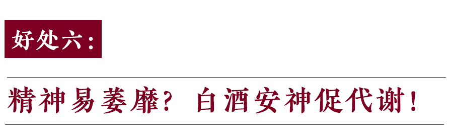 早在古代,白酒就受到了人们的欢迎,它在保健、治病上的功效更被医者们所看好,广泛应用于医药领域。白酒中的成分很复杂,其中不少是人体健康所必需的,有失眠症者睡前饮少量白酒有利于快速睡眠,并能刺激胃液与唾液分泌起到健胃的作用,但是要注意——是少量、少量哦。