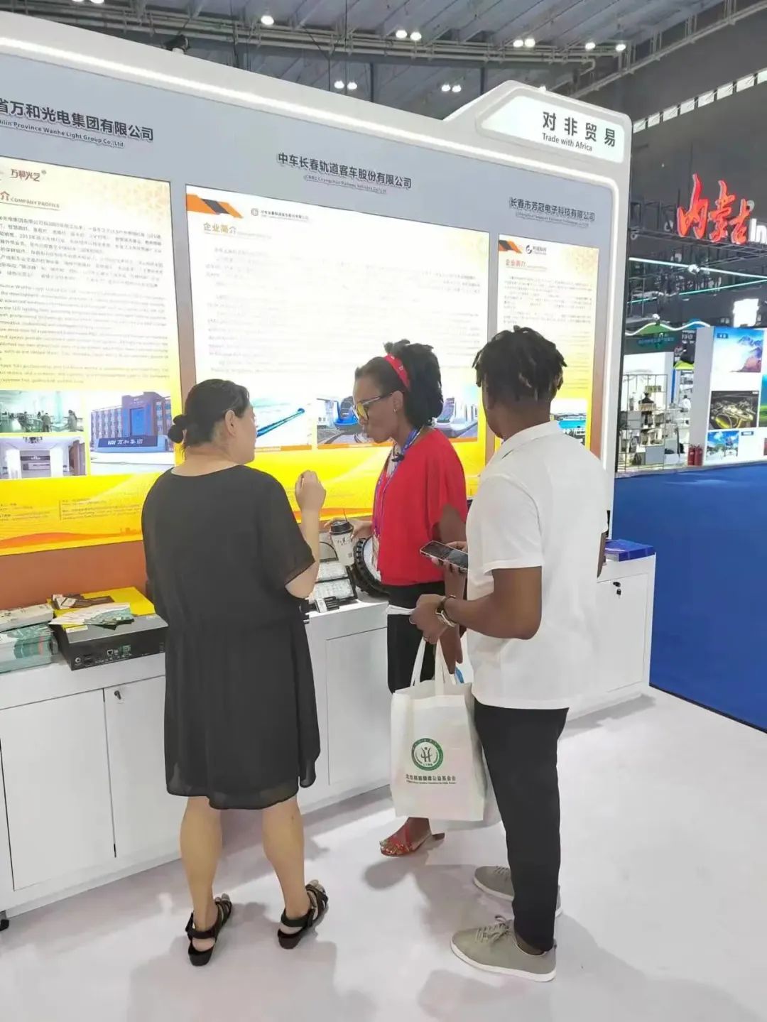 在本届博览会上,吉林省代表团积极参会,通过展会展品、展板宣传、LED显示屏集中展示吉林省对非经贸合作情况、成果及远景规划。一汽、中车长客股份、水电一局、吉林送变电、百克生物、通化东宝、正业生物等20户企业参展参会,重点展示我省对非贸易、对非工程承包、对非援助、对非投资、农业合作和医疗健康六大板块,凸显吉林省与非洲在汽车、农业、生物医药、工程承包等领域开展经贸合作的产业优势。吉林省参展企业深刻感受展会新亮点、新精彩,充分把握我国对非搭建平台为各方带来的发展动力和机遇。