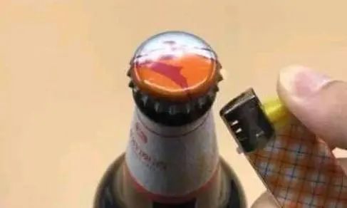 如果我们想要打开啤酒瓶的盖子的话,我们需要用到一个打火机,然后用打火机在瓶盖上面包上几秒钟以后就能够轻松拧开了,这个小机关是不是非常实用呢?因为啤酒瓶的瓶盖在遇到高温了以后,它其实就是会与瓶子脱离,那么在这个时候我们把啤酒的瓶盖去掉,就会变得非常的容易。