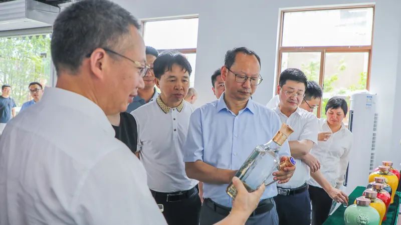 仪式后,江春生、何斌等参观了七星酒业酿酒车间。