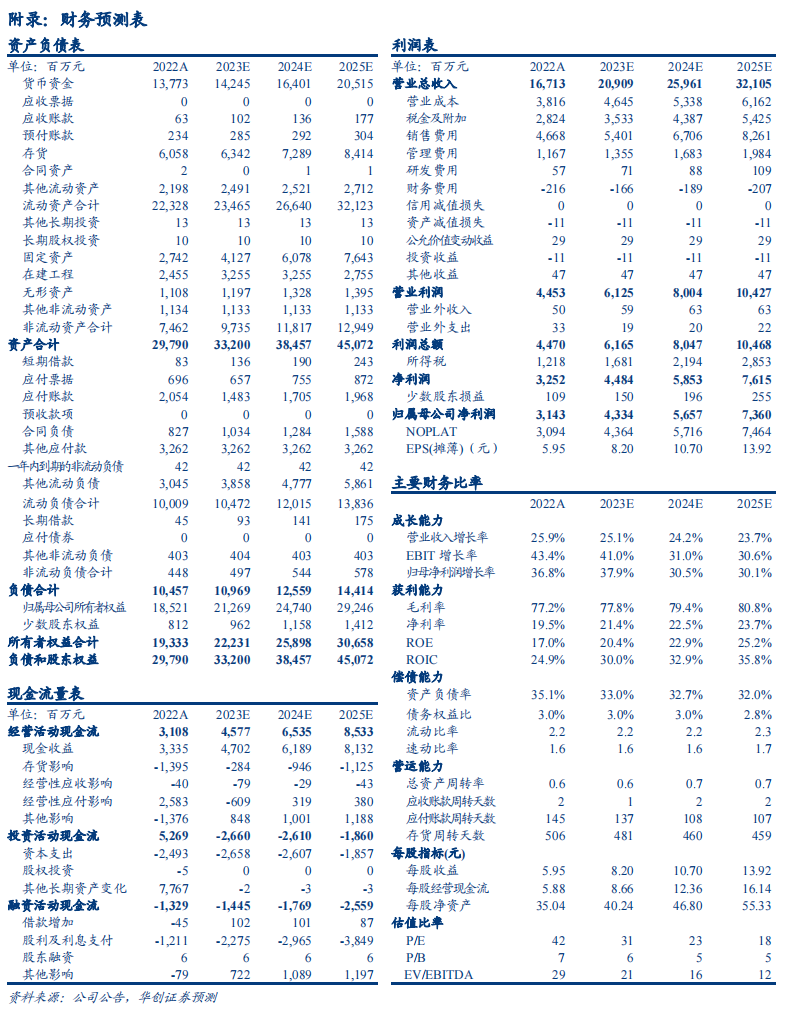 上半年延续优秀表现,下半年有望提前完成目标,全年业绩弹性具备释放空间,维持“强推”评级。公司上半年延续以往优秀表现,数字化赋能渠道管控,价盘整体表现稳健,任务如期完成,下半年或迎中秋国庆旺季催化,叠加费用提质增效,业绩弹性有望释放。考虑公司长线战略清晰,产品线布局完善,全国化战略有望打开增长空间,我们维持23-25年EPS预测为8.20/10.70/13.92元,维持目标价330元,重申“强推”评级。