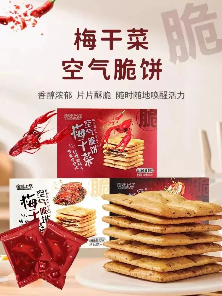 主营产品:梅干菜空气脆饼、马卡龙夹心饼、喜庆饼干及其它酥性韧性饼干