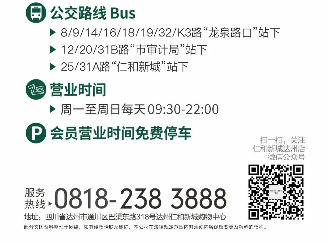 店铺地址:达州仁和新城2F