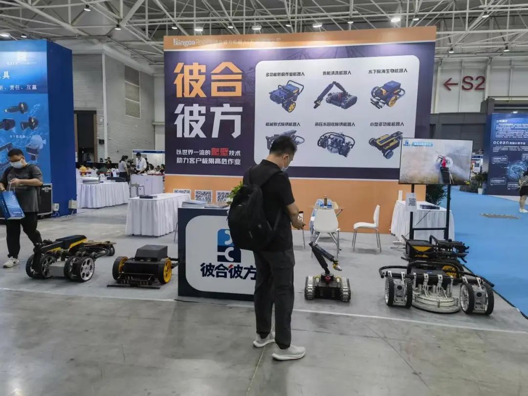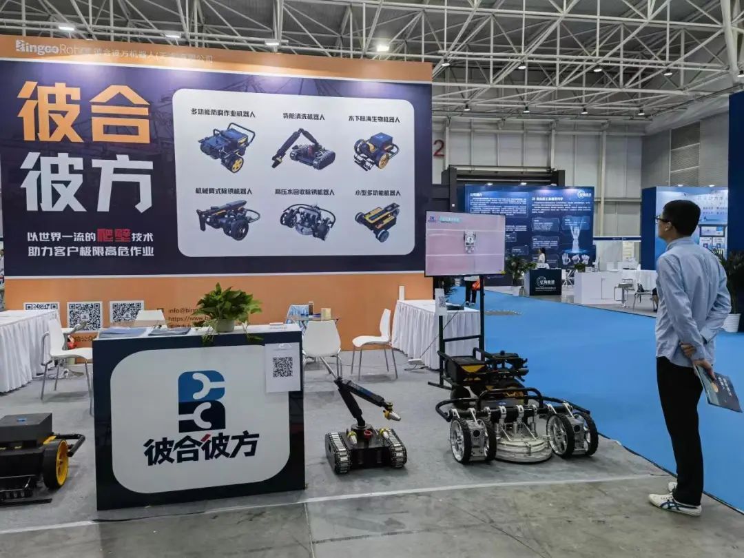 展会上,彼合彼方旗下的水下除海生物机器人、货舱清洗机器人、高压水回收除锈机器人、多功能防腐作业机器人、小型多功能机器人和机械臂式除锈机器人一同登场,给现场的观众们留下了极深的印象。