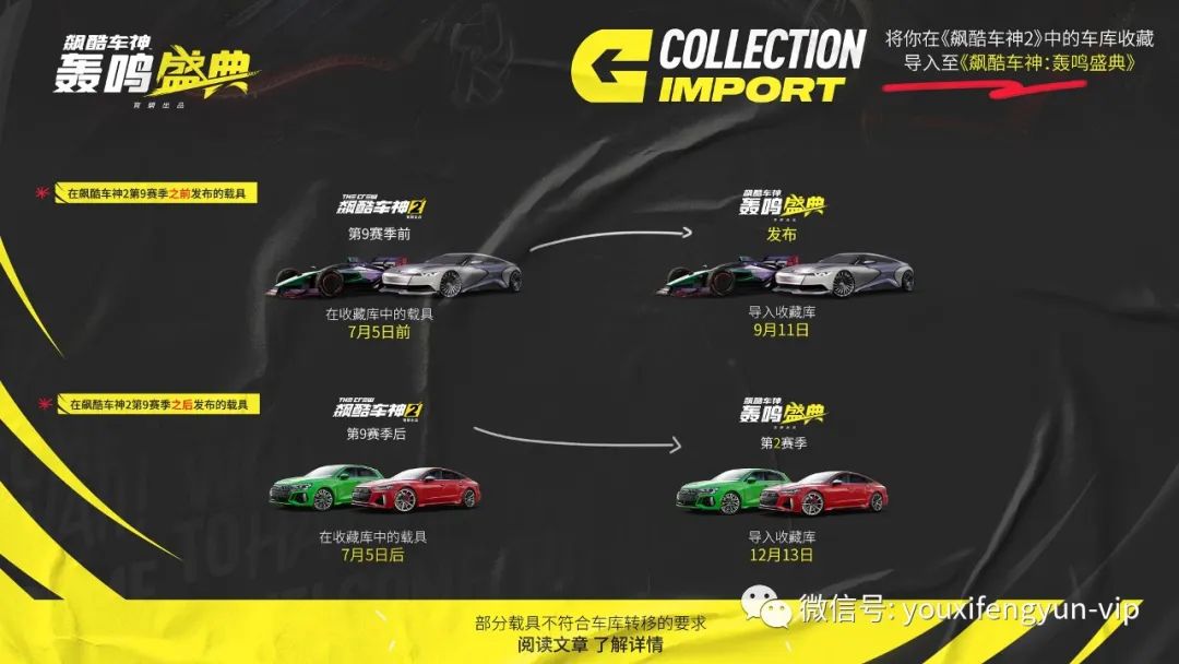 《飙酷车神2》的玩家也将对收藏导入功能有了更进一步的了解。这项功能可以让玩家将倾注了多年心血的汽车收藏免费导入到《飙酷车神:轰鸣盛典》之中。在《飙酷车神2》第八赛季结束前购买或解锁的大多数载具和皮肤均可通过该功能进行导入,第九赛季的内容则会在后续开放导入功能。同时,玩家可以对收藏导入功能进行充分的自主选择。想要白手起家的玩家大可选择在轰鸣盛典中重新开始竞速冒险和收藏历程。