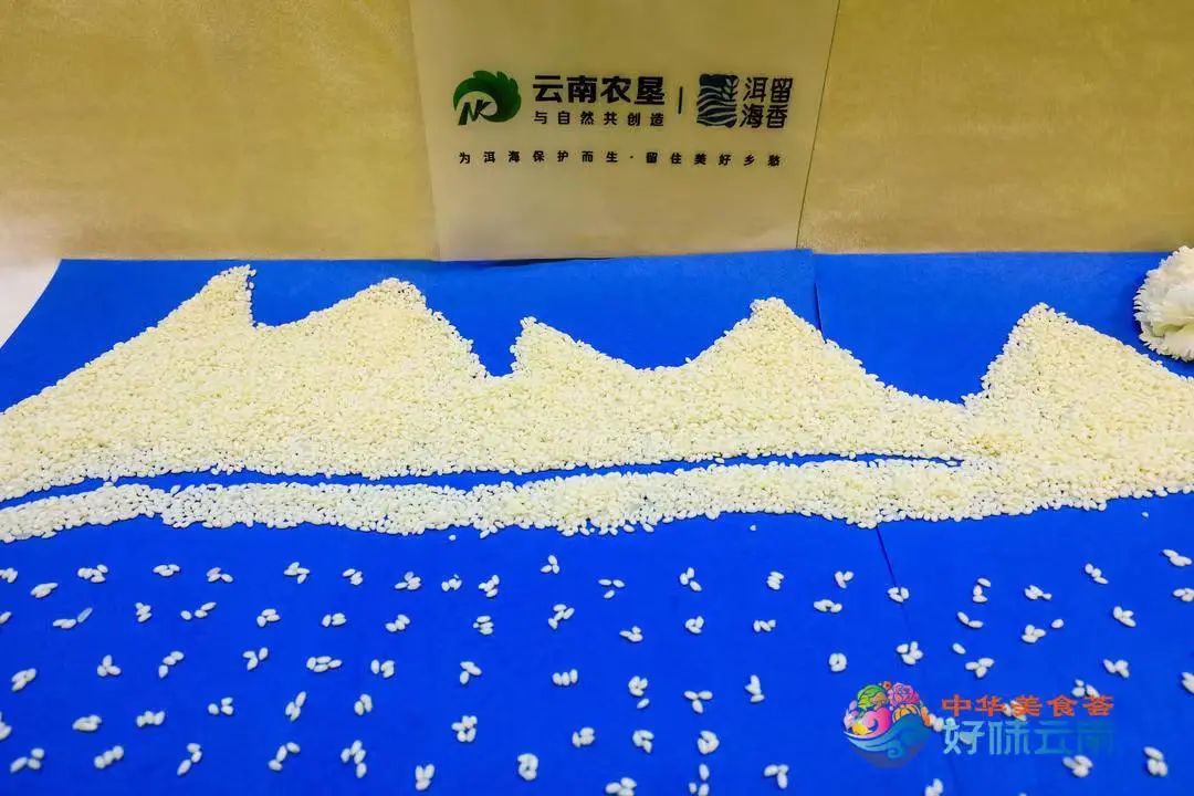 为展现云南农垦“天然源·自然味”绿色食品特点,饮服公司在展台设计上以云南高原特色农产品为主体,采用清新自然的设计风格,利用云粮集团洱海留香米绘制了一幅“田园山水画”,寓意为洱海留香米在生产过程中注重生态、健康和可持续发展,体现了云南农垦集团“与自然共创造”的产品理念。在展台旁的茶饮品鉴区,饮服公司工作人员手持陶瓷茶壶和茶杯,专注而细致地为参观者冲泡着普洱茶,每一道流程都经过精心训练和反复琢磨,力求将云南普洱茶的丰富口感和醇厚香气完美呈现。