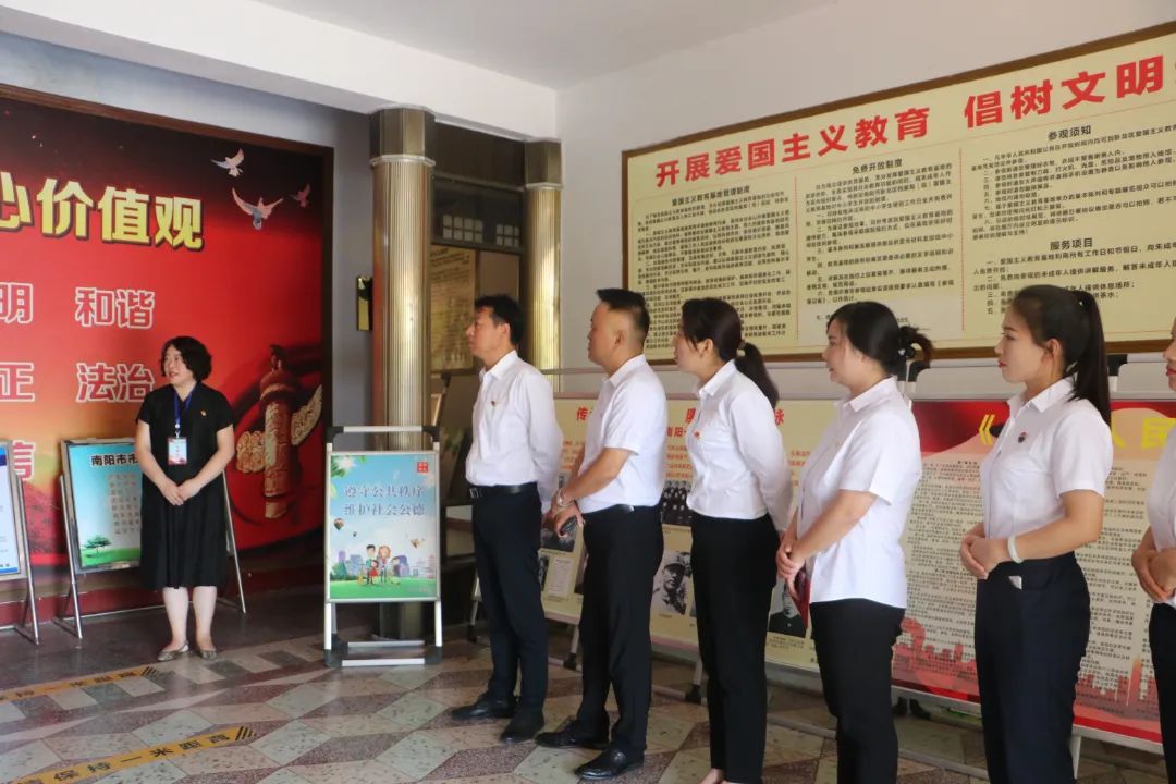 活动中,全体党员在讲解员的带领下,通过参观图片、实物和聆听讲解,从南阳第一个中共支部建立开展,回顾了红军在南阳的革命事迹,聆听波澜壮阔的革命历史,感受峥嵘岁月中的革命精神,共同缅怀革命先辈,接受爱国主义和革命传统教育。