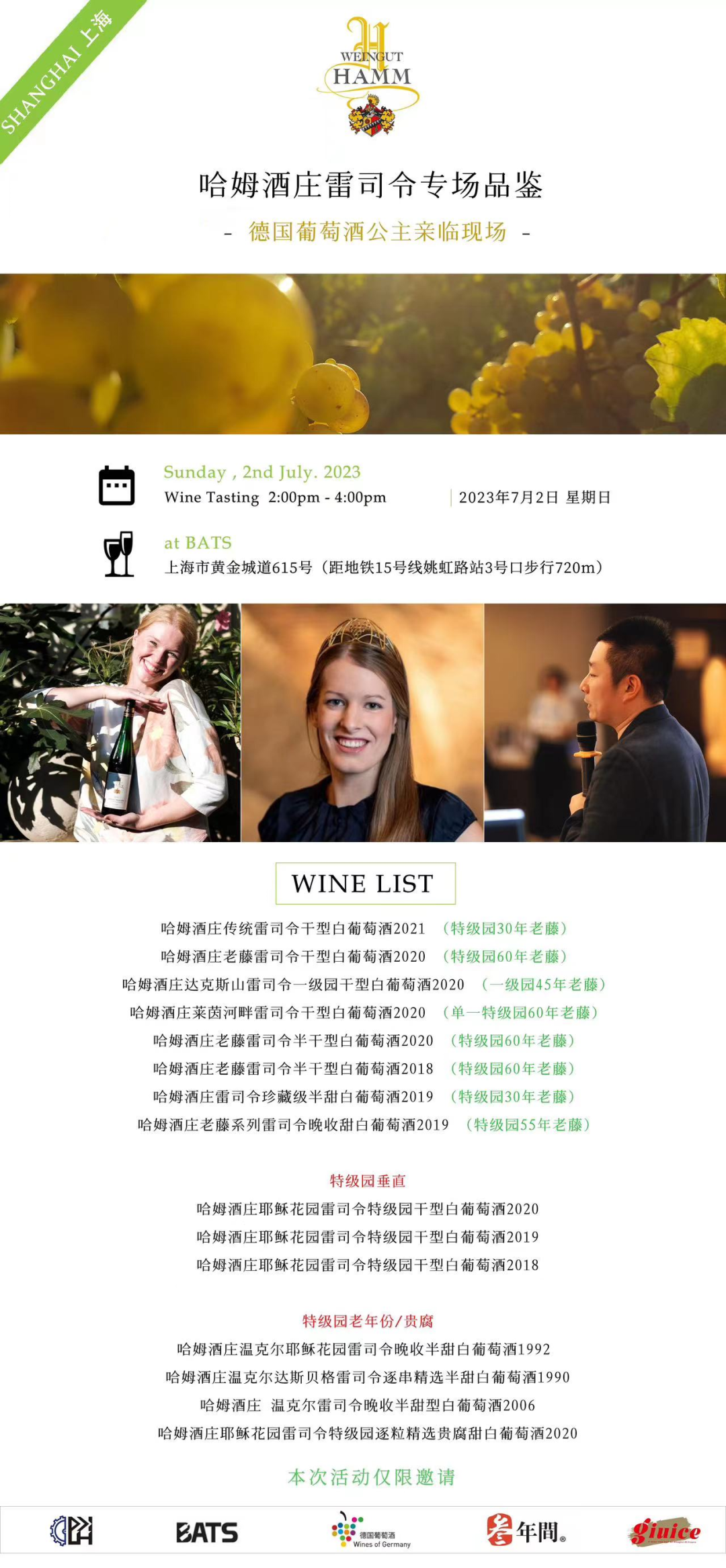 这也是继2019年后,时隔四年,德国葡萄酒公主再度访问中国。届时,德国葡萄酒公主Luise Böhme将和我们、广大的消费者、葡萄酒业内人士、媒体以及意见领袖一起,带来关于德国哈姆酒庄非同凡响的德国葡萄酒盛宴。